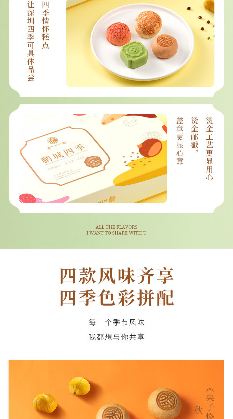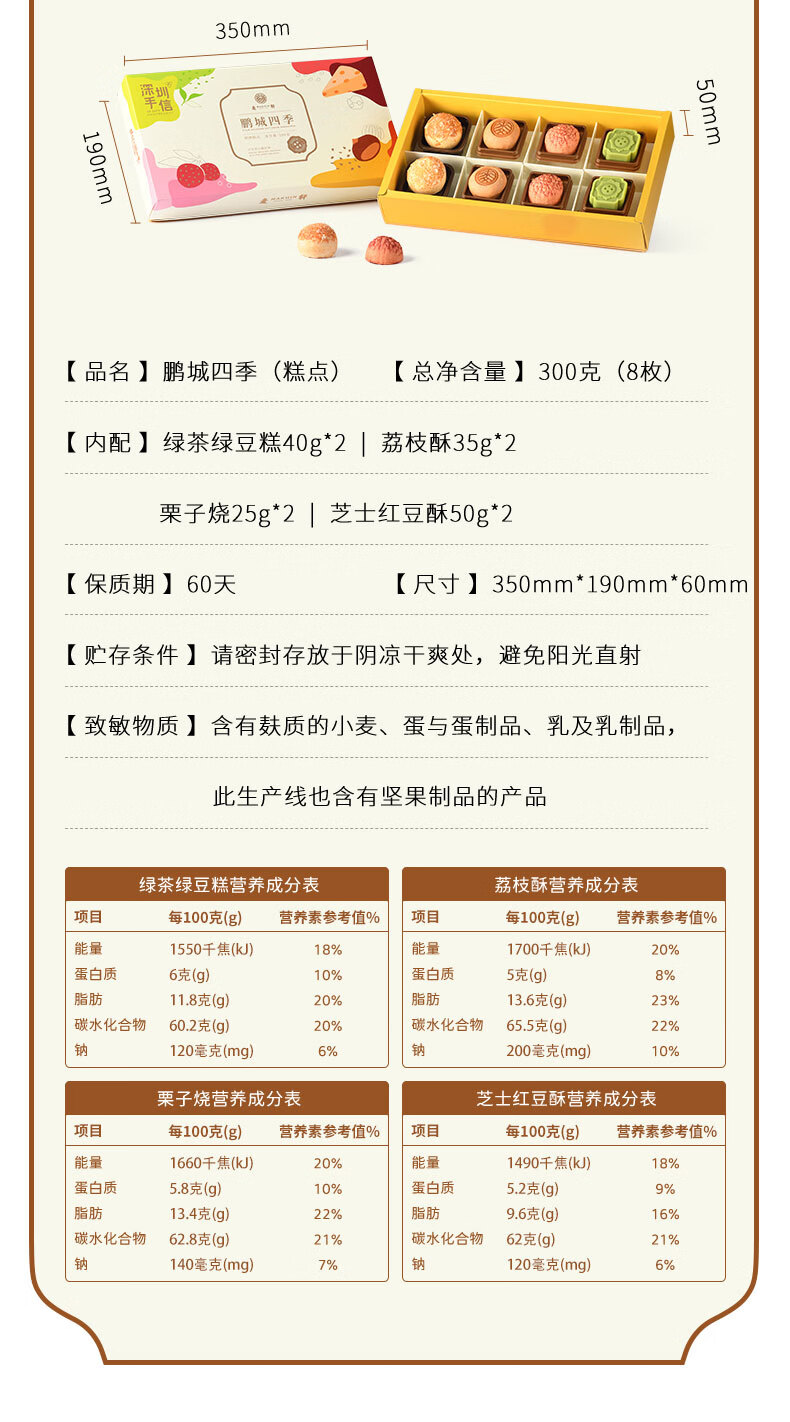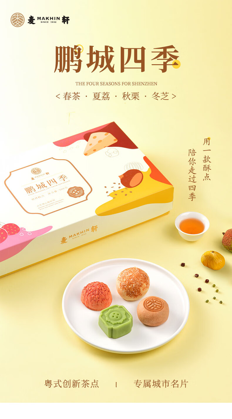 麦轩鹏城四季深圳特产手信礼盒300g绿豆糕荔枝酥红豆酥下午茶点心