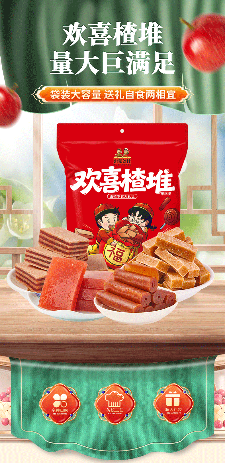 公社联盟欢喜楂堆山楂零食大礼包果丹皮山楂条礼盒无添加剂 欢喜楂堆2斤装