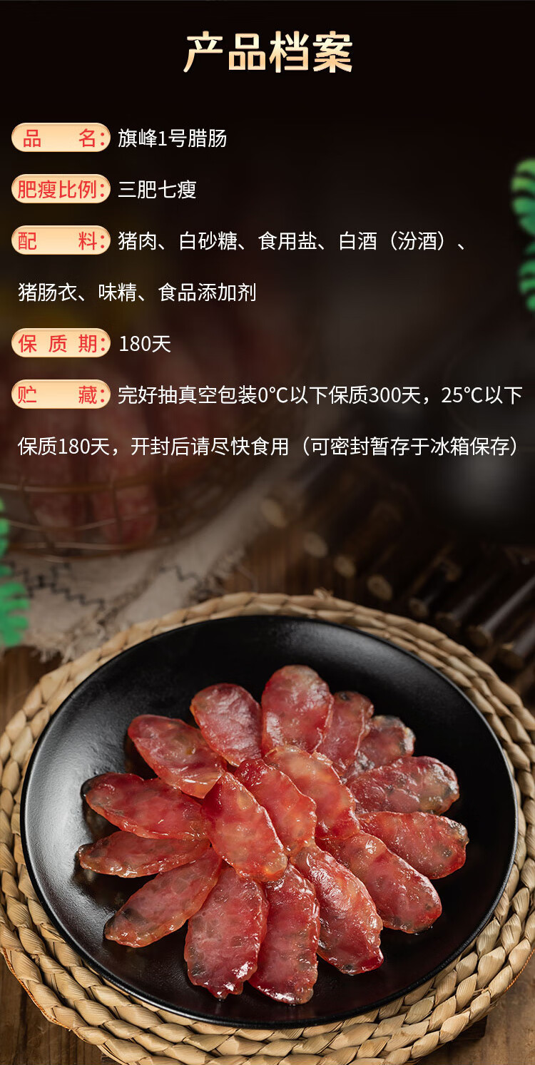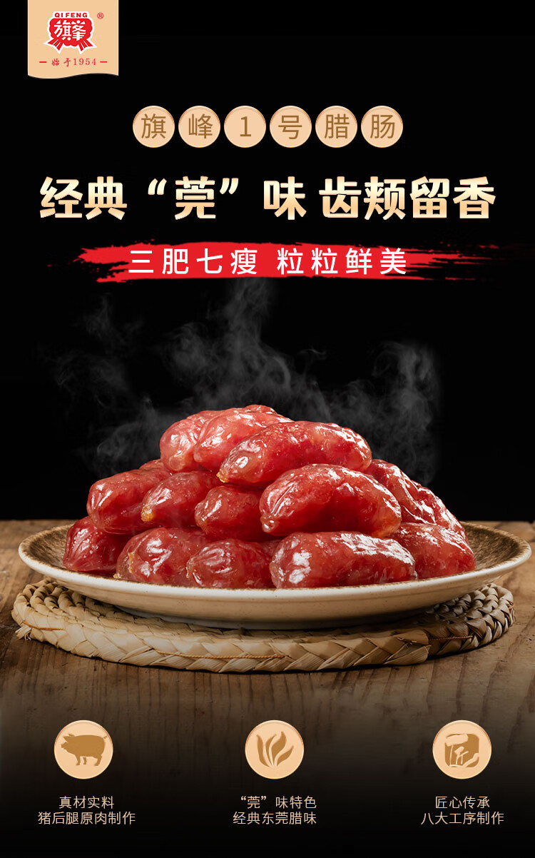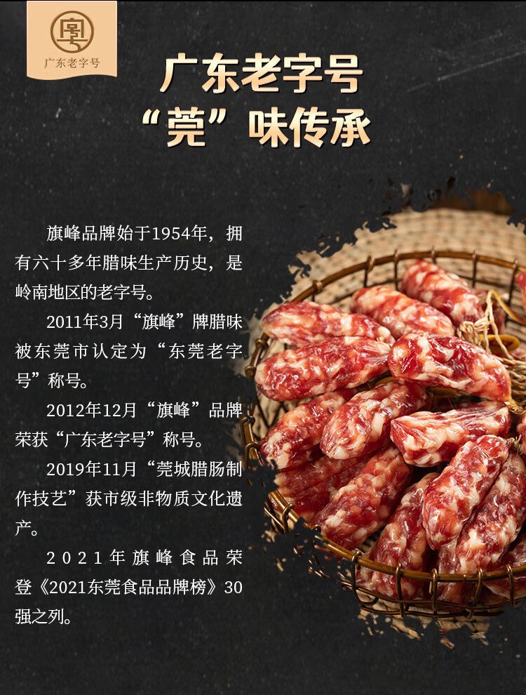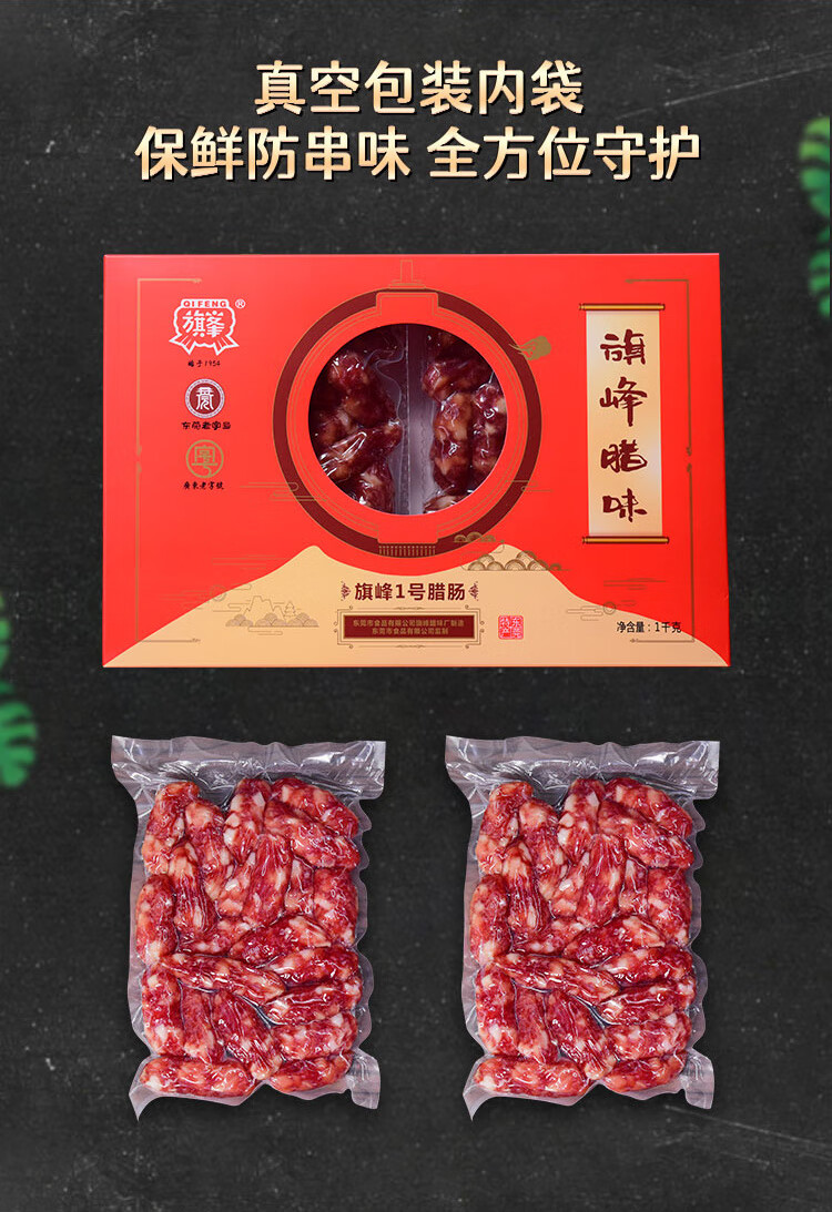 旗峰腊肠腊味礼盒 广东东莞特产伴手礼手信 广式香肠腊味年货礼盒 1号腊肠1000g礼盒装