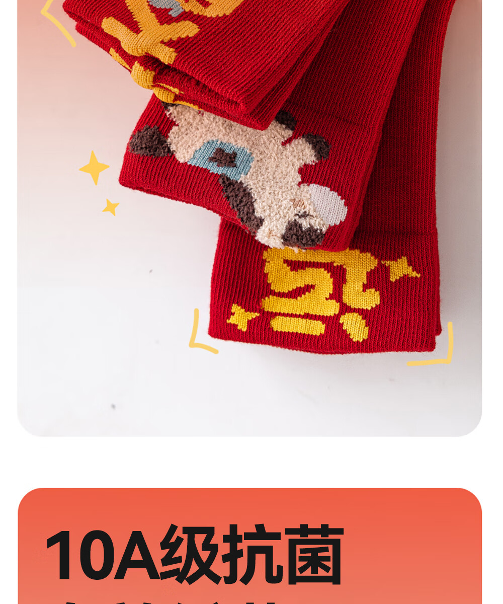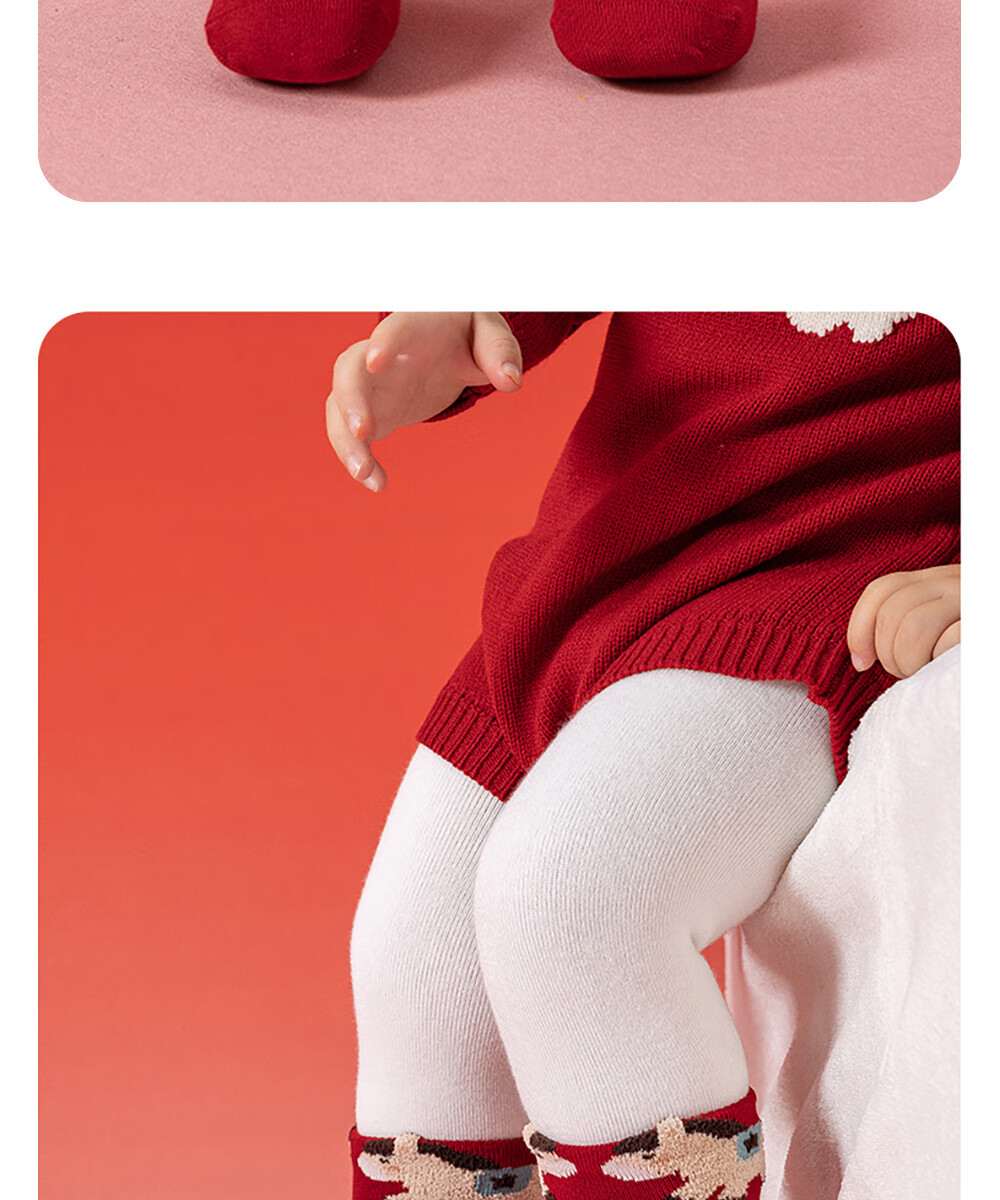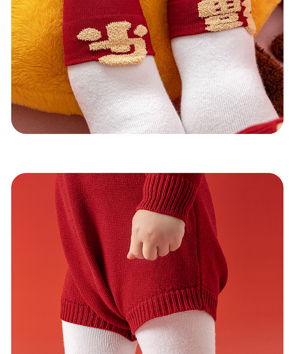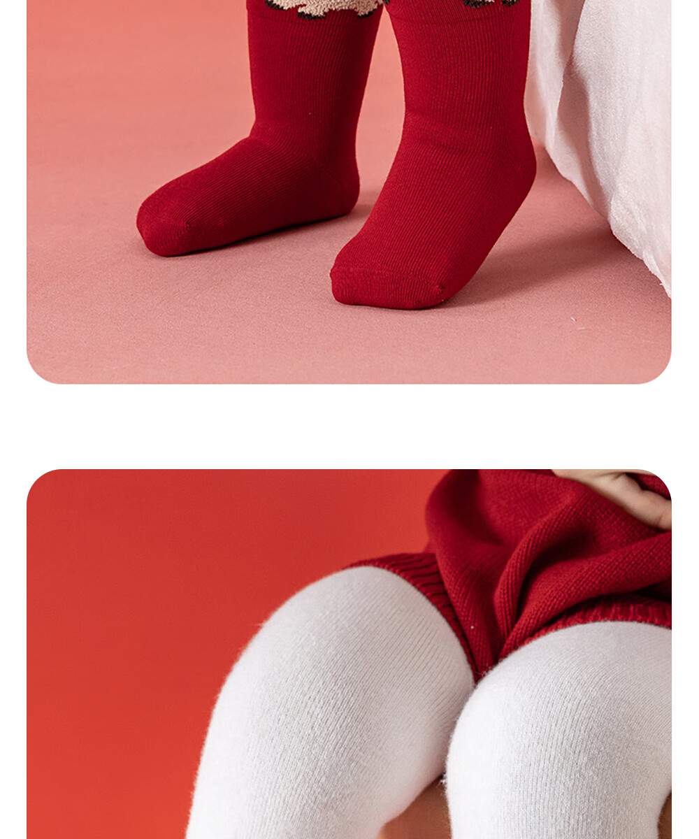 贝肽斯婴儿袜冬季新年新生儿宝宝中筒袜周岁满月百天加厚红色袜子 吉祥福乐-4双装 1-3岁 建议脚长12-14cm