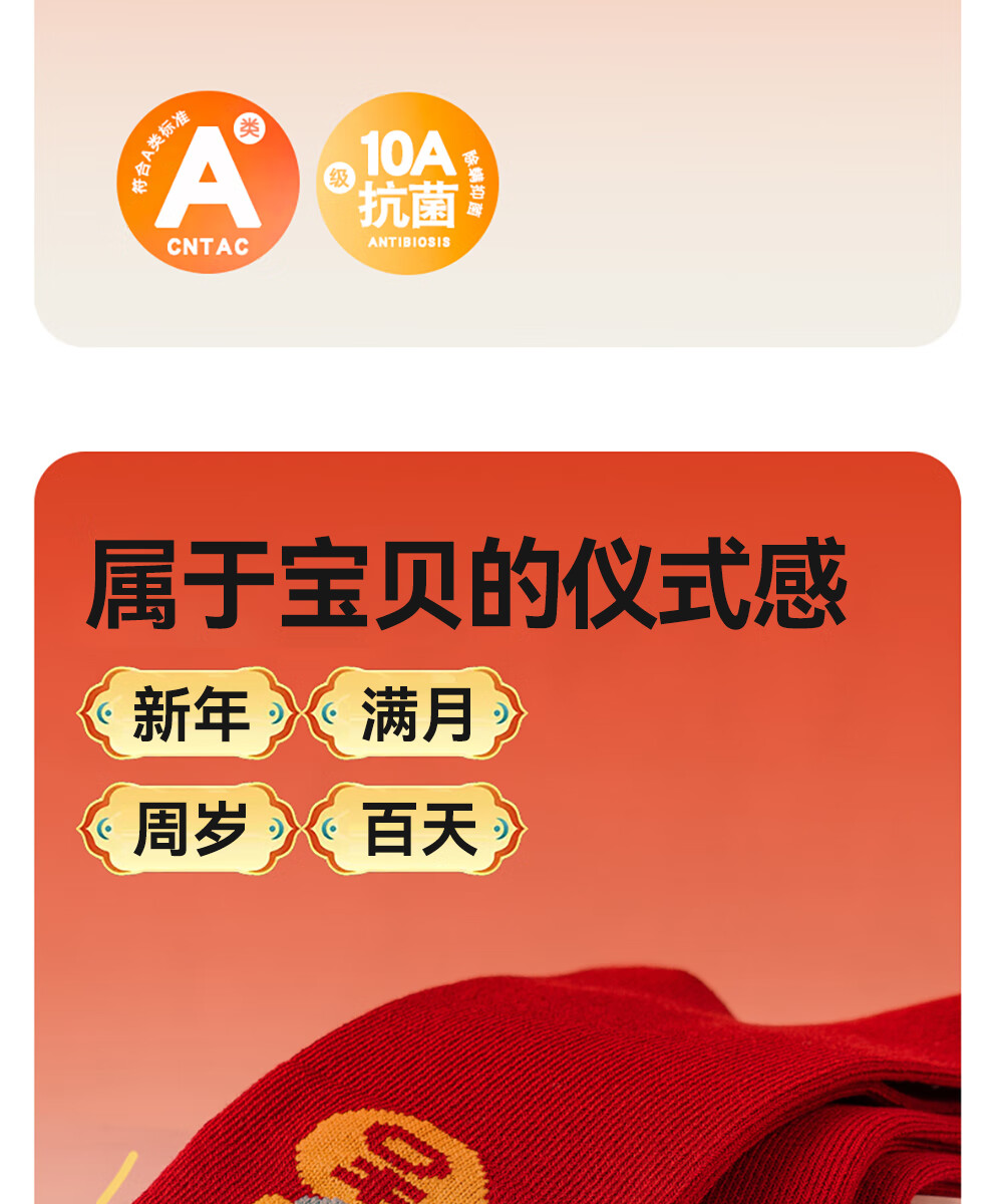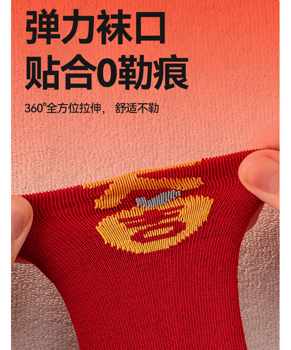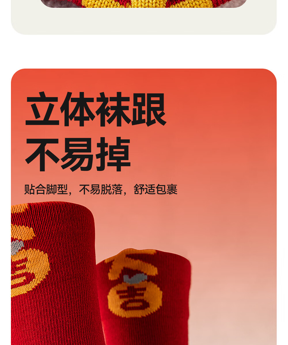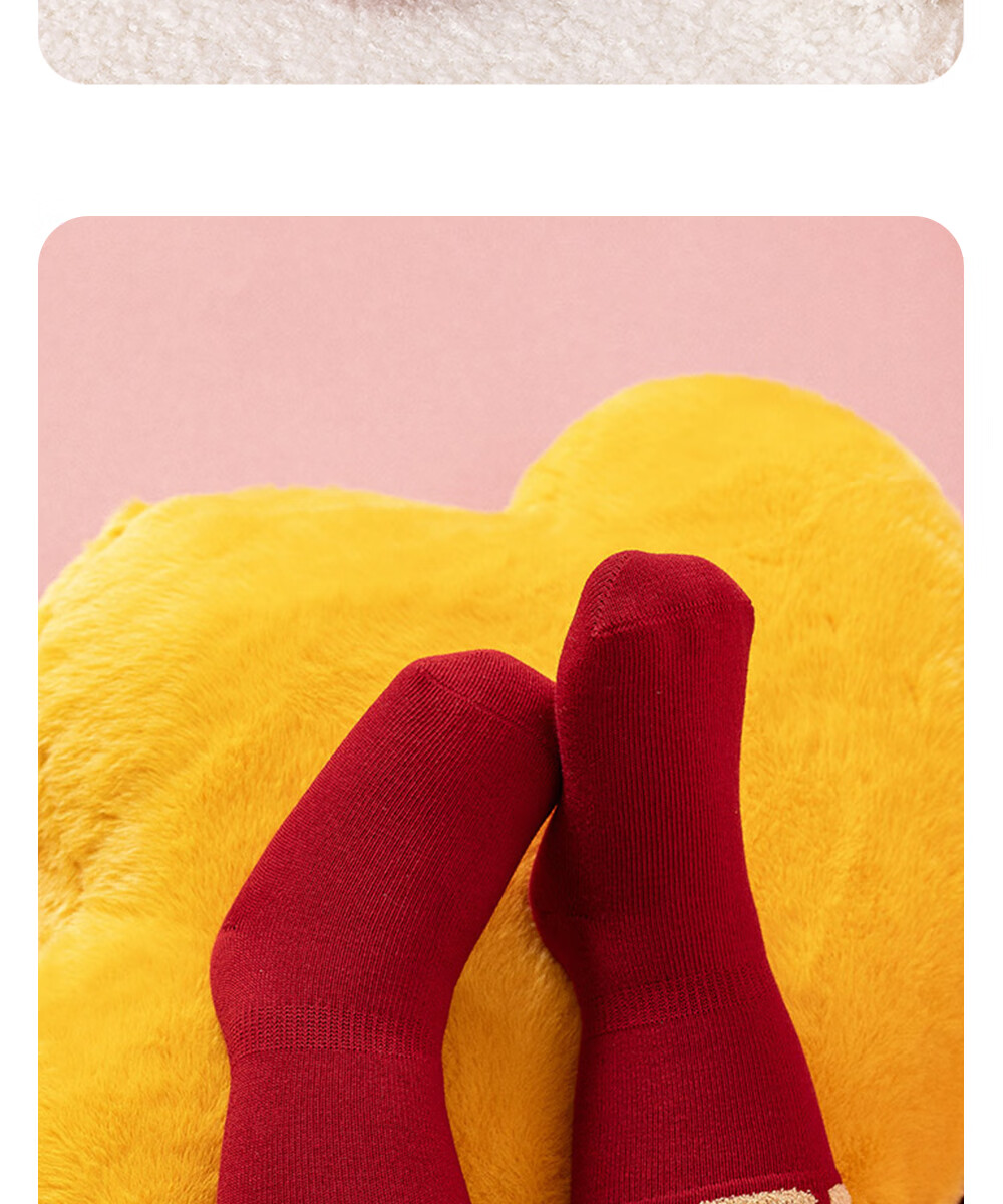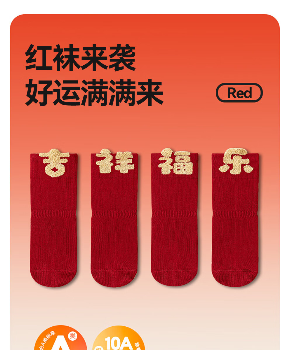 贝肽斯婴儿袜冬季新年新生儿宝宝中筒袜周岁满月百天加厚红色袜子 吉祥福乐-4双装 1-3岁 建议脚长12-14cm