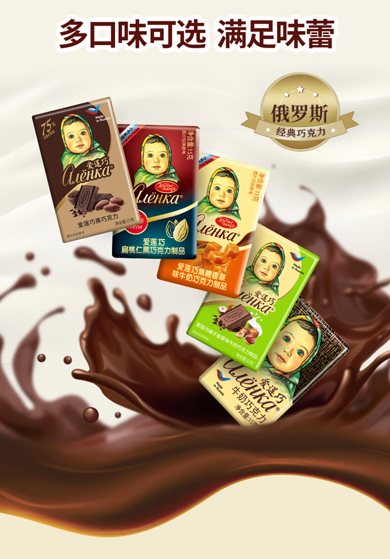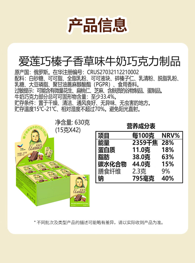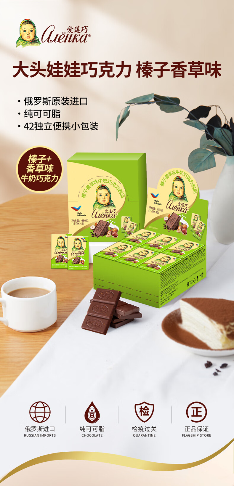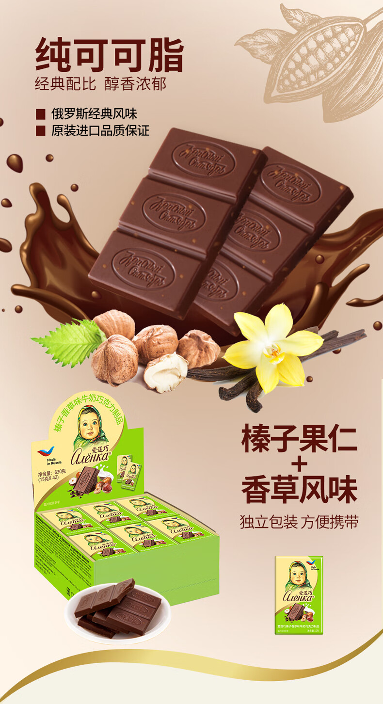 爱莲巧榛子香草味牛奶巧克力15g*42 俄罗斯进口大头娃娃 休闲下午茶零食