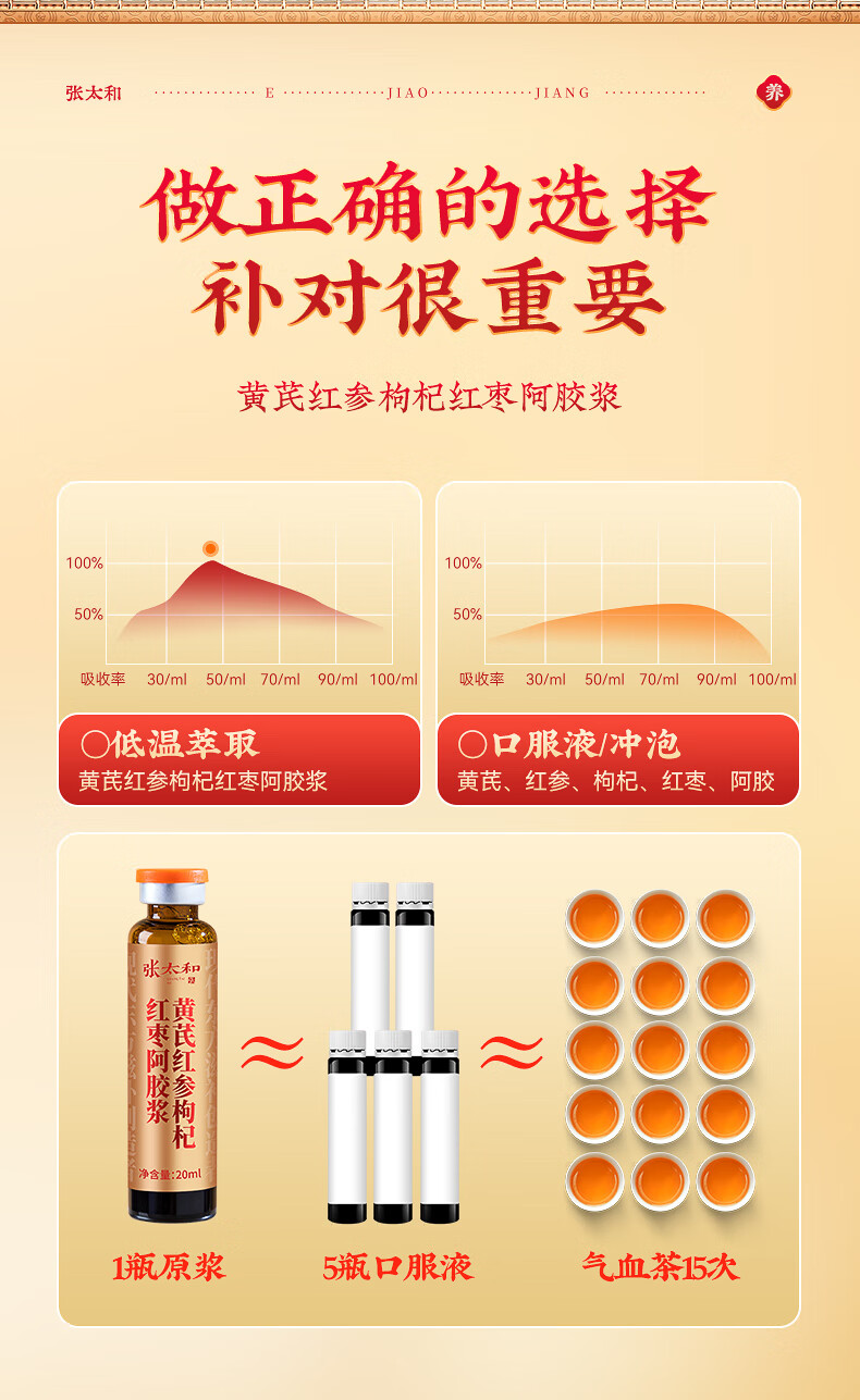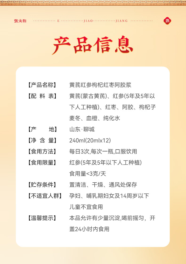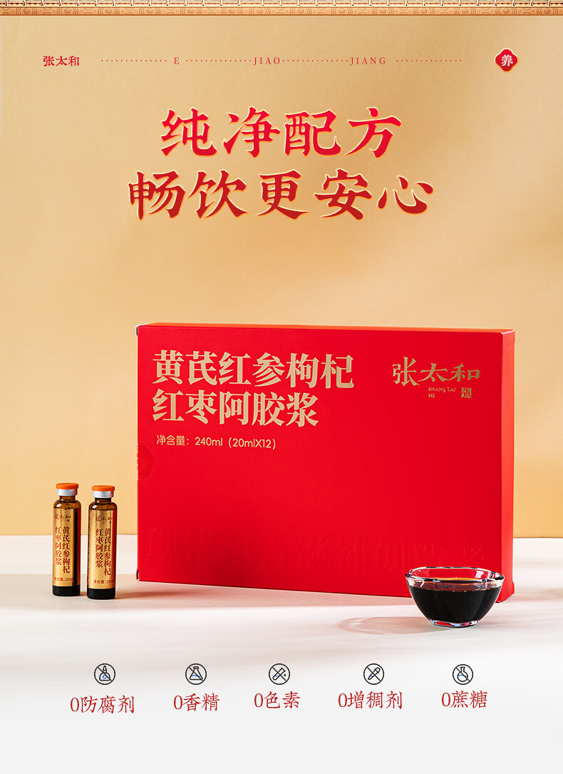 张太和黄芪红参枸杞红枣阿胶浆240ml(20ml*12)阿胶口服液阿胶饮滋补好礼 黄芪红参枸杞红枣阿胶浆240ml/盒*2盒送礼袋