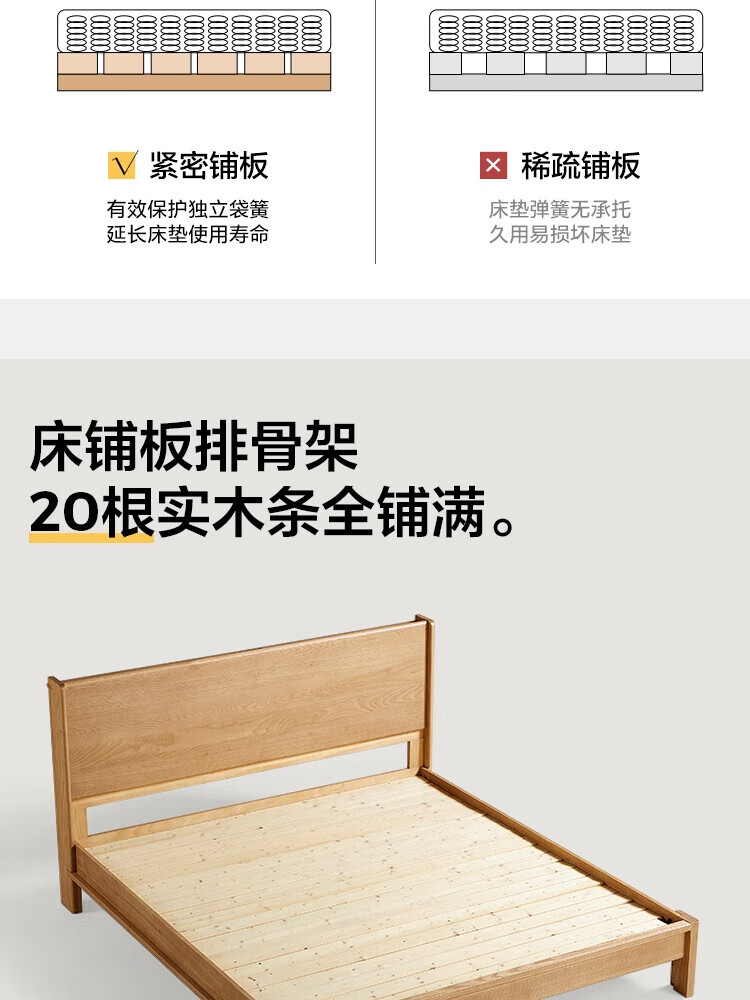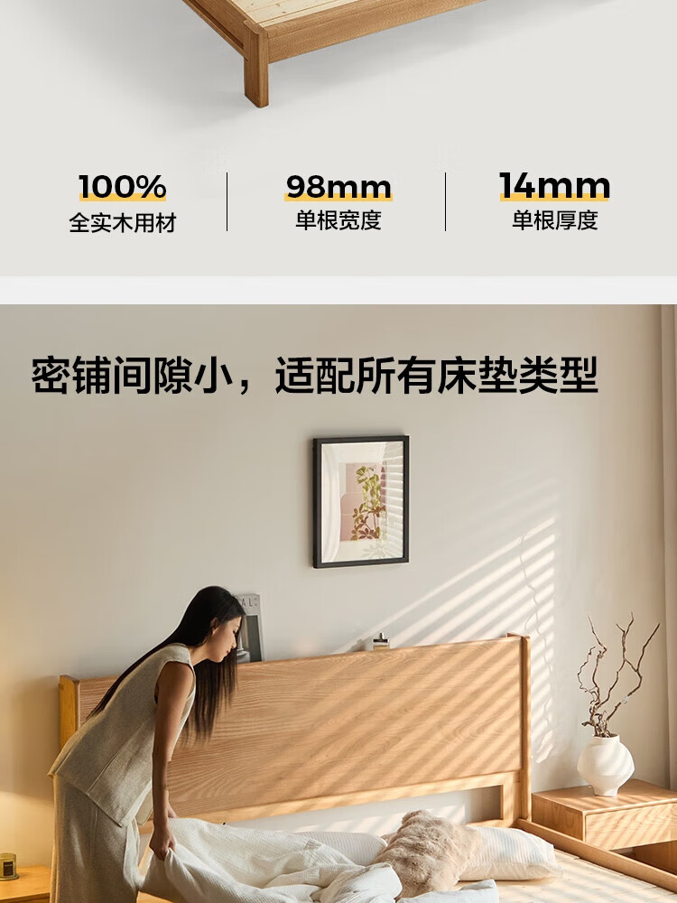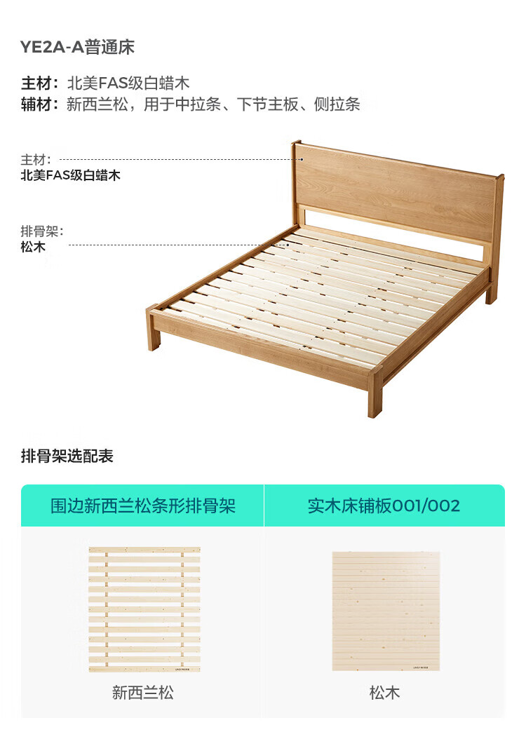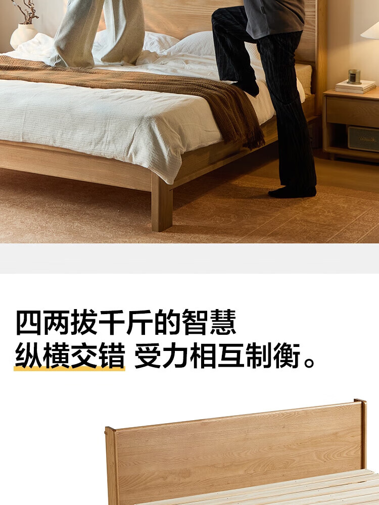 林氏家居1米5全实木床2025新款白蜡木家具排骨架床架木业续木系列YE2A 排骨架|全实木床 1.5x2米