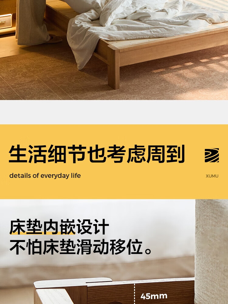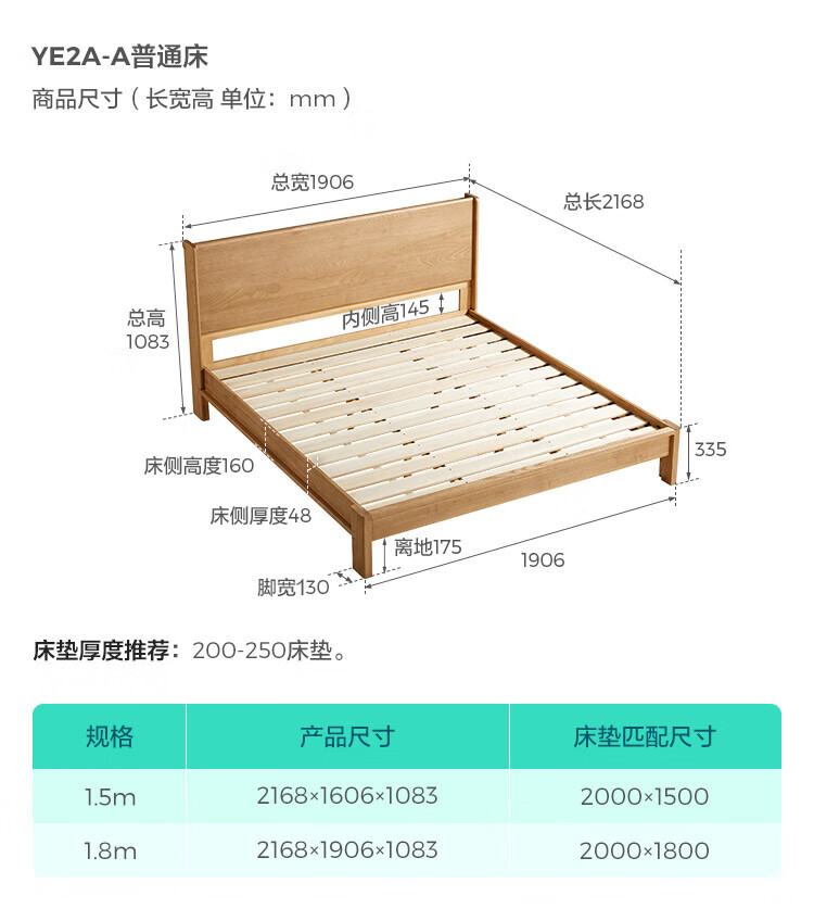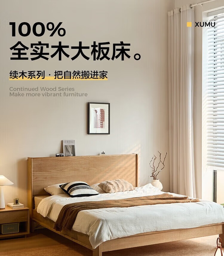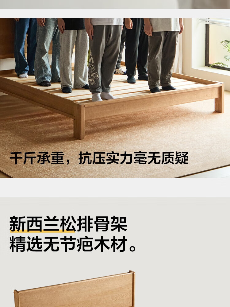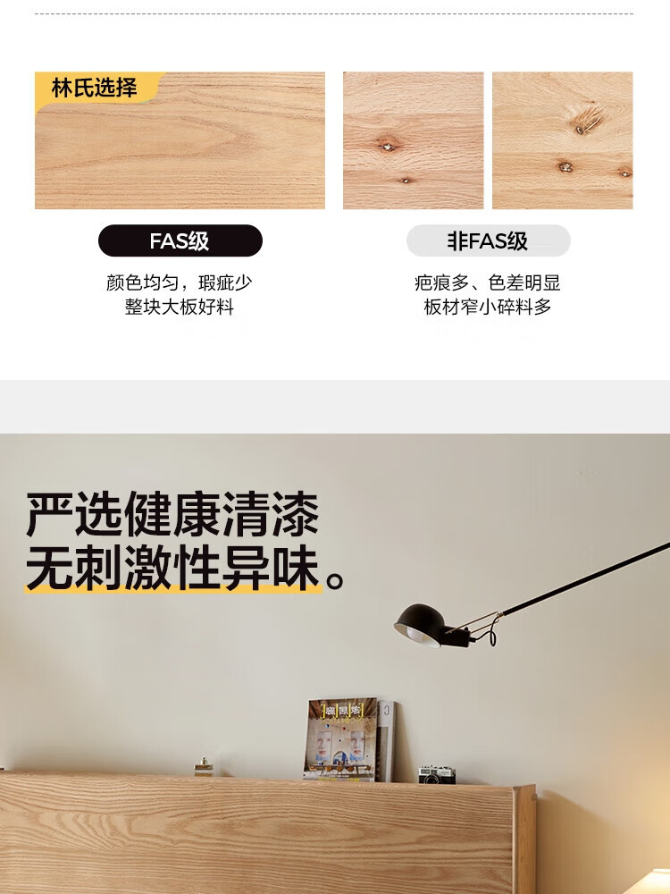 林氏家居1米5全实木床2025新款白蜡木家具排骨架床架木业续木系列YE2A 排骨架|全实木床 1.5x2米