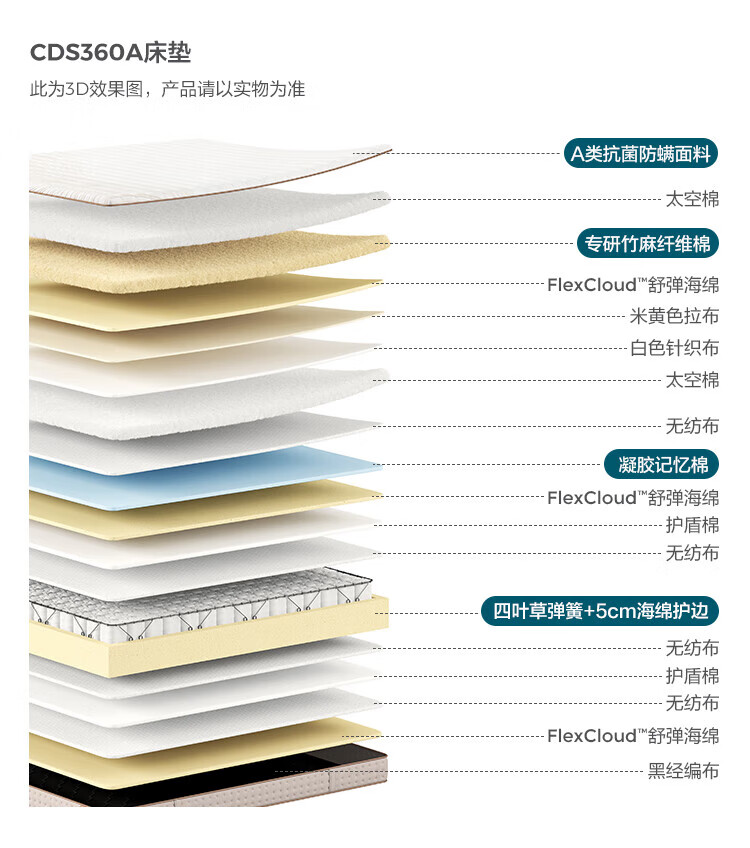 喜临门城市爱情极光白2S 椰棕床垫 邦尼尔弹簧床垫 1.5x2米 偏硬