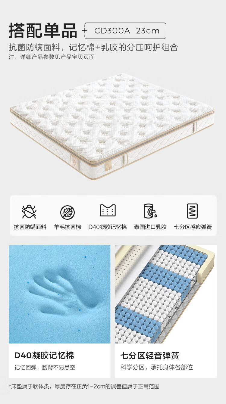 喜临门梦蝶床垫 乳胶椰棕床垫抗菌防螨独袋弹簧床垫 1.8x2米 软硬适中