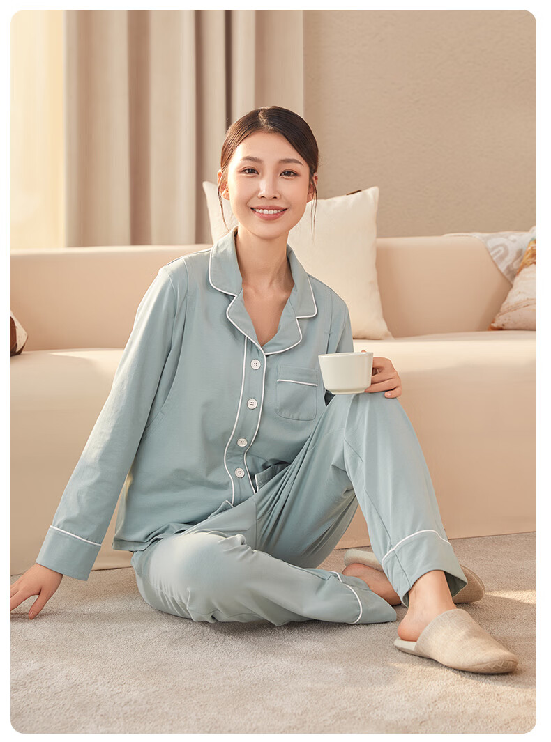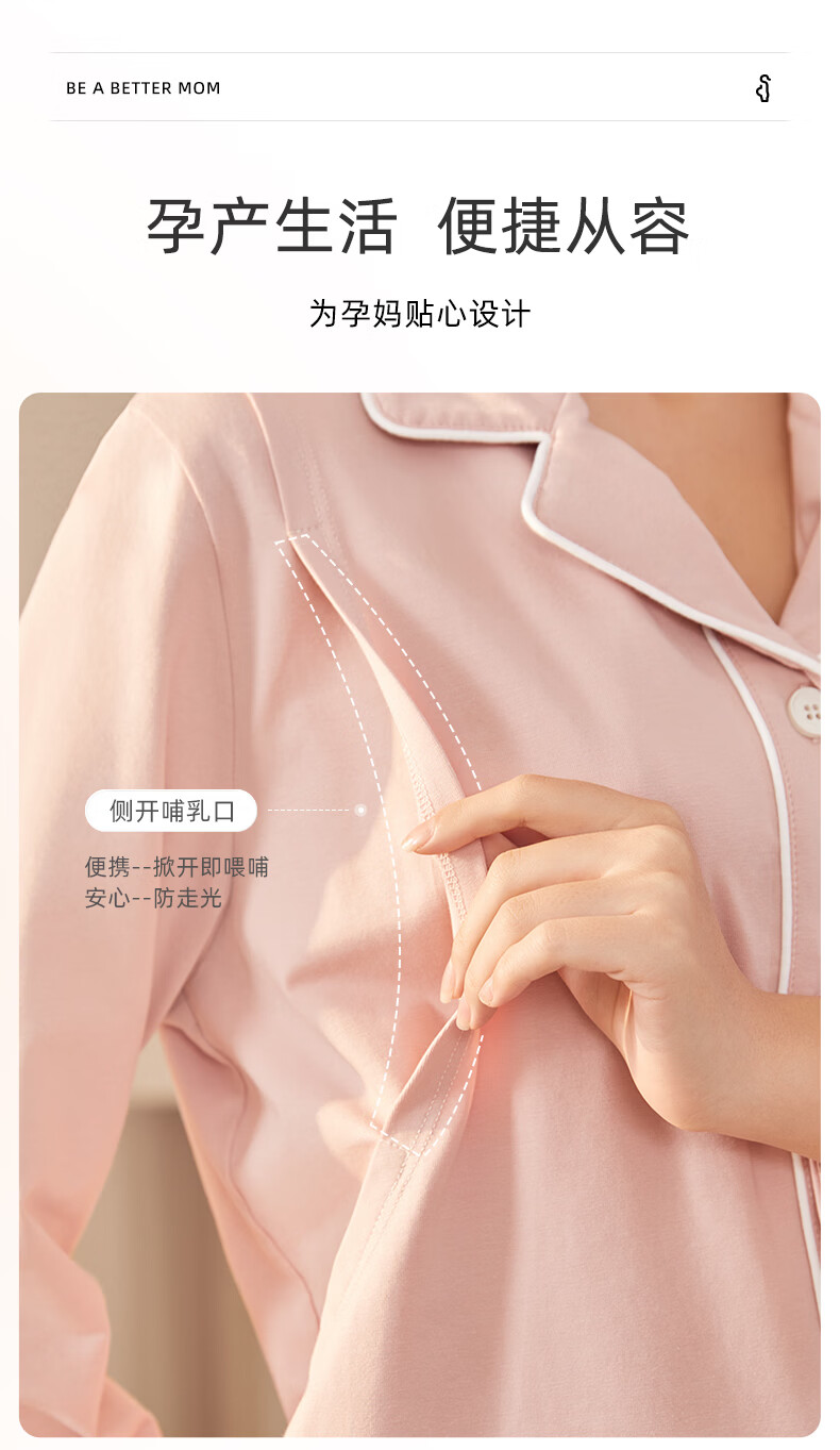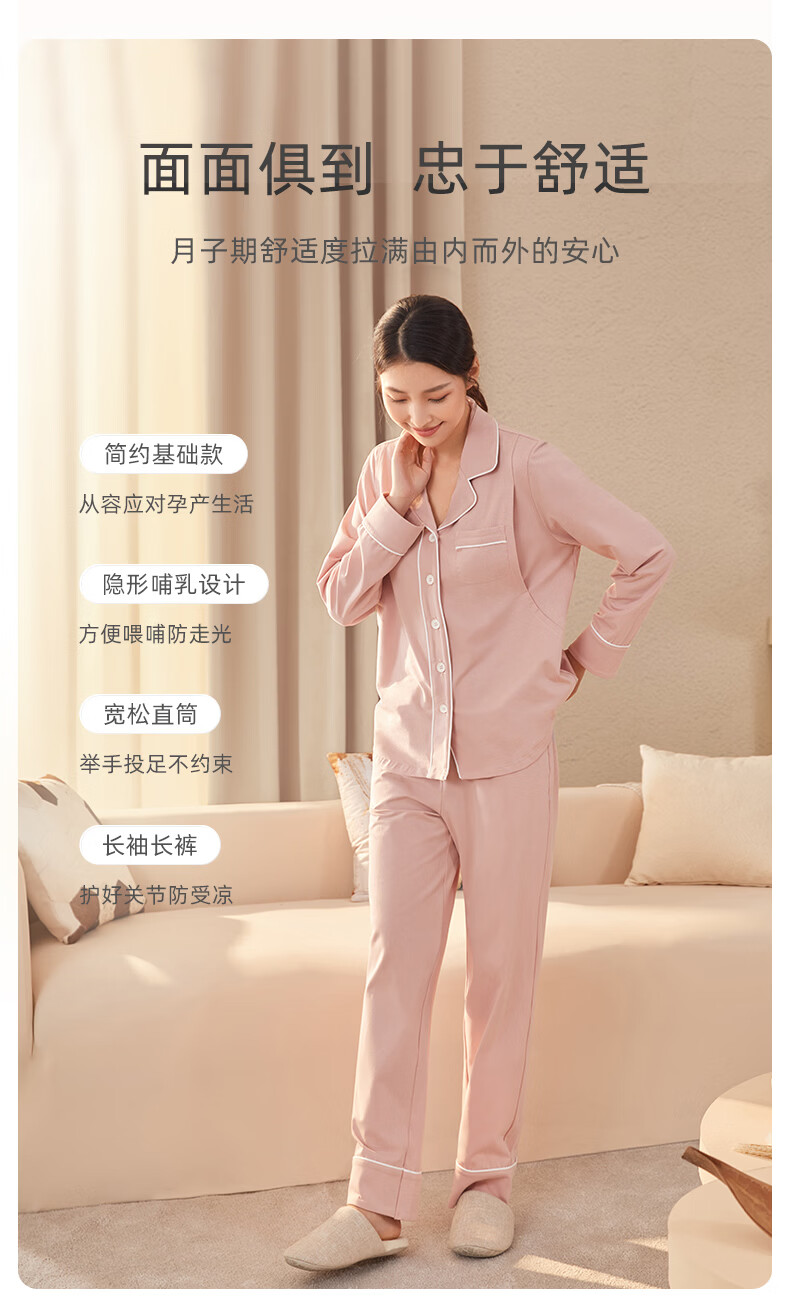 月子服秋冬【极简主义】棉产后孕妇睡衣哺乳家居服套装 豆粉M码