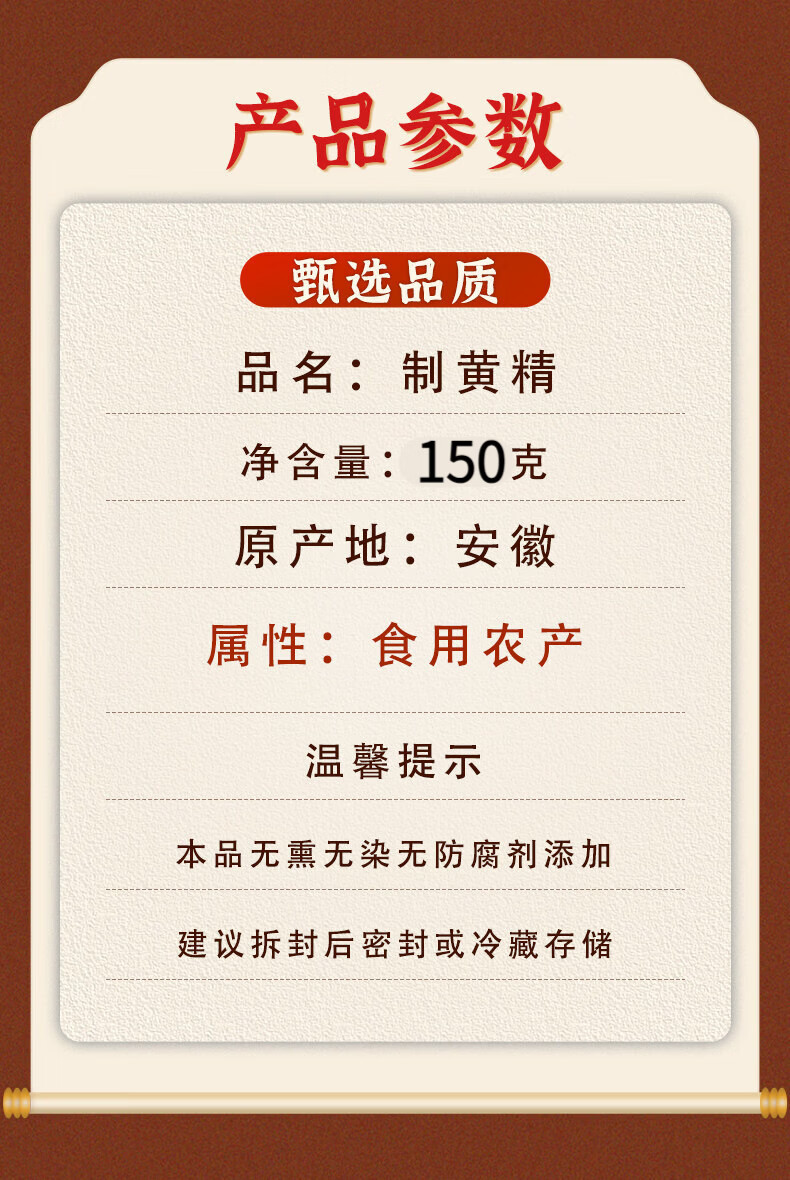 福佑润九蒸九晒炙熟黄高品质九华山制黄精野生中药材正品特级泡酒 制黄精150克九蒸九晒 150g*1罐