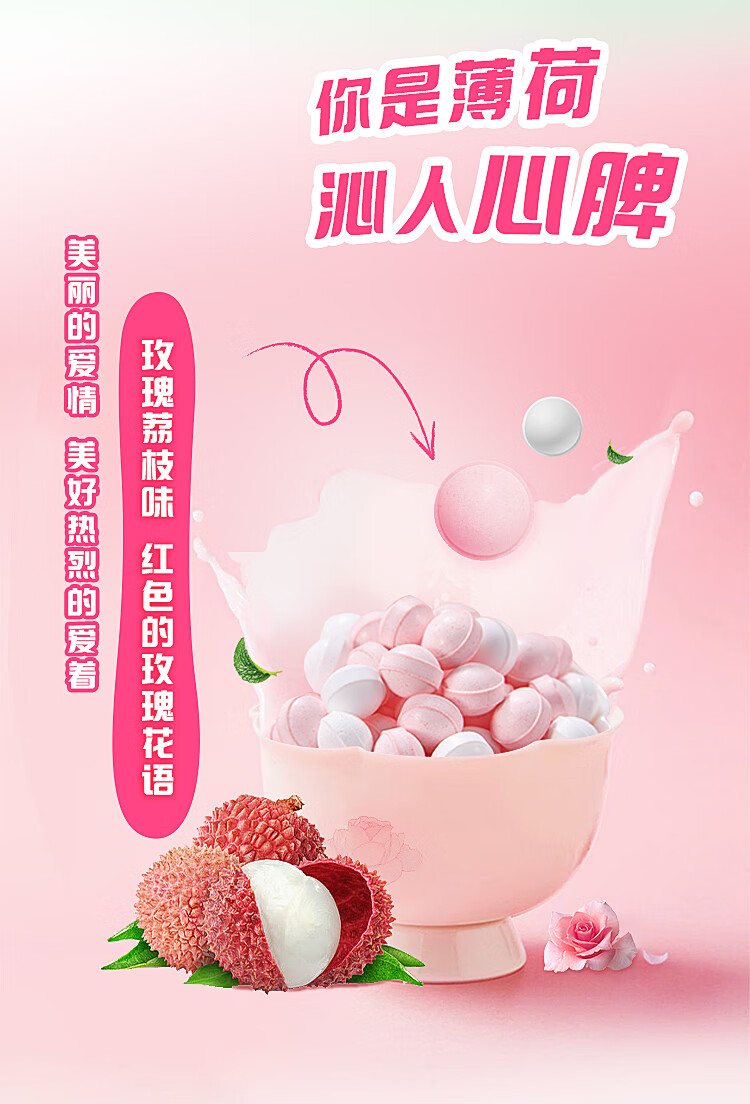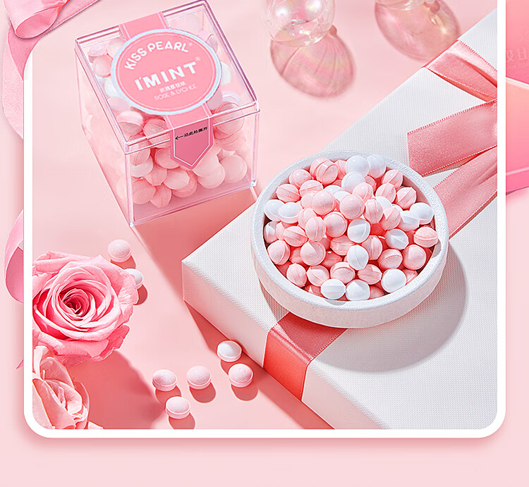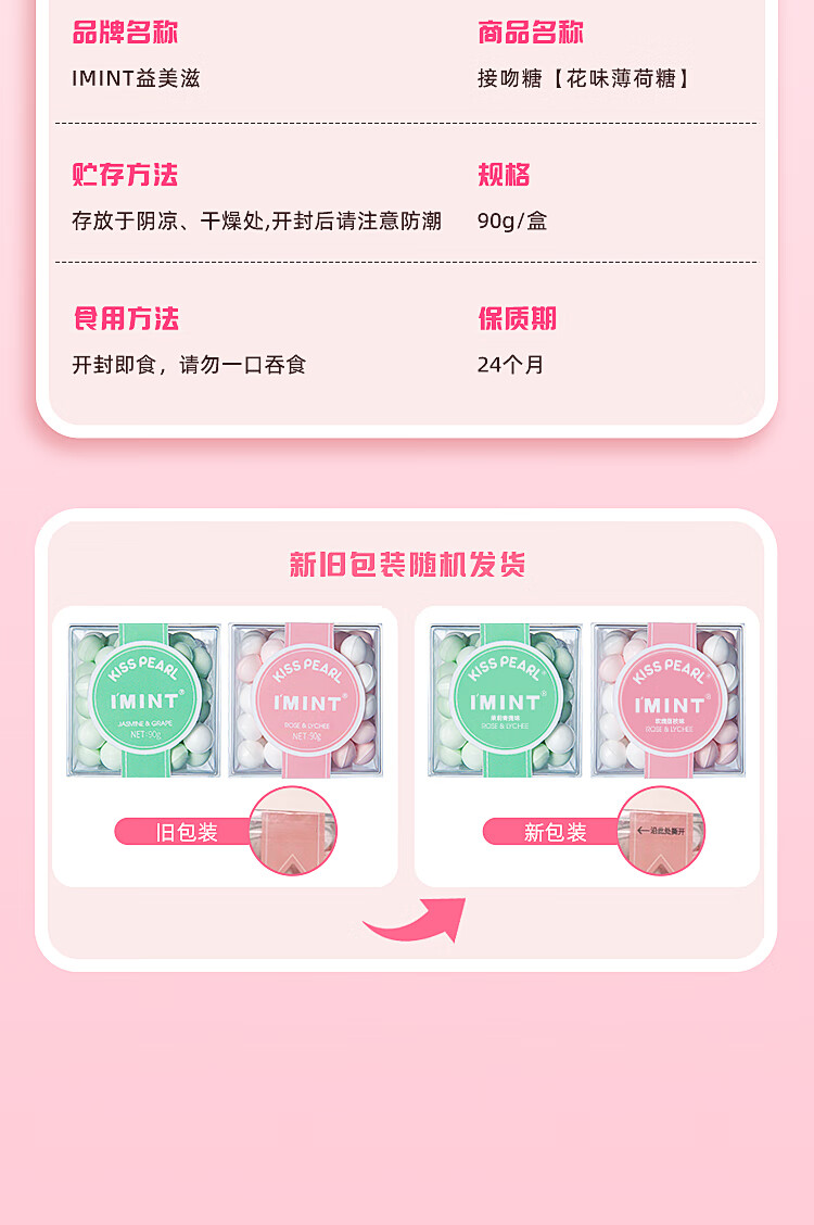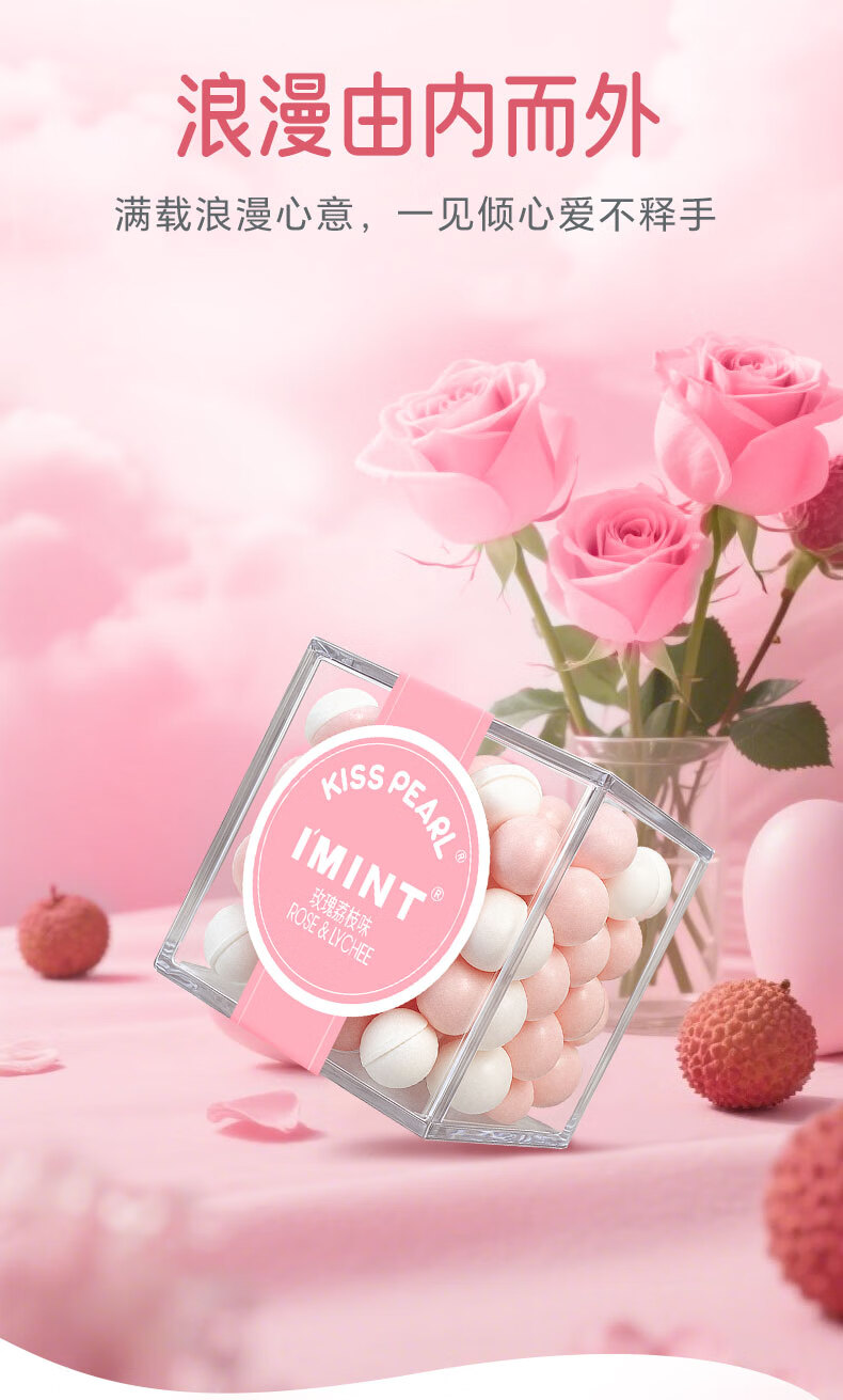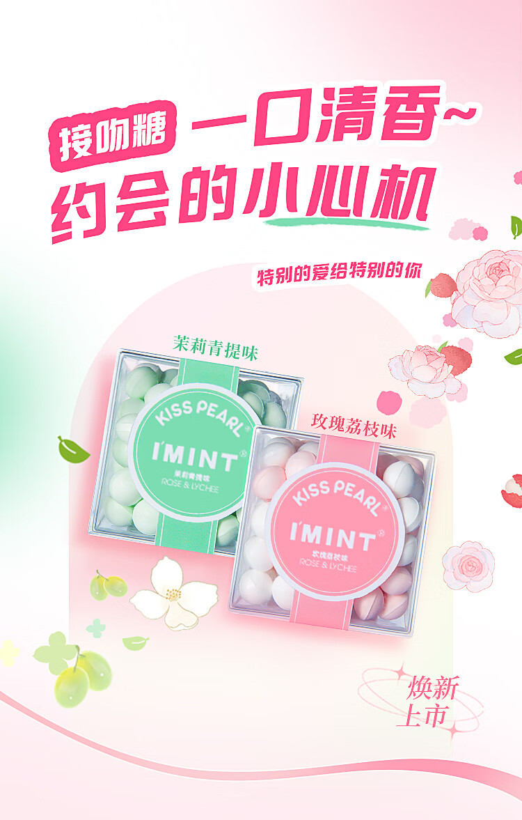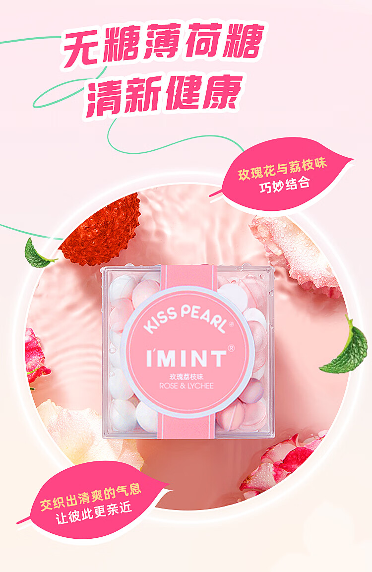 I'MINT益美滋无糖薄荷糖 口气清新糖 kiss接吻糖 花香味香体糖 口香糖果零食 【玫瑰味/茉莉味】90g*6盒