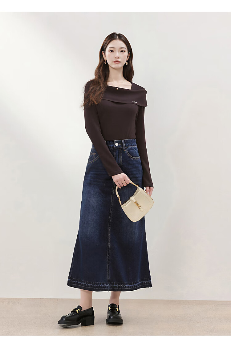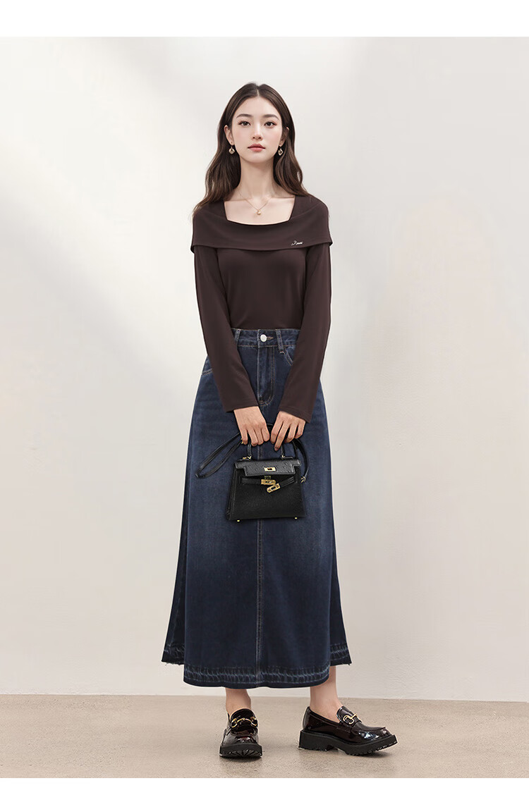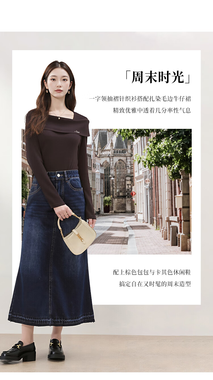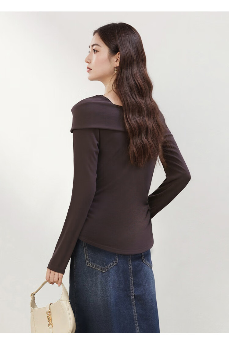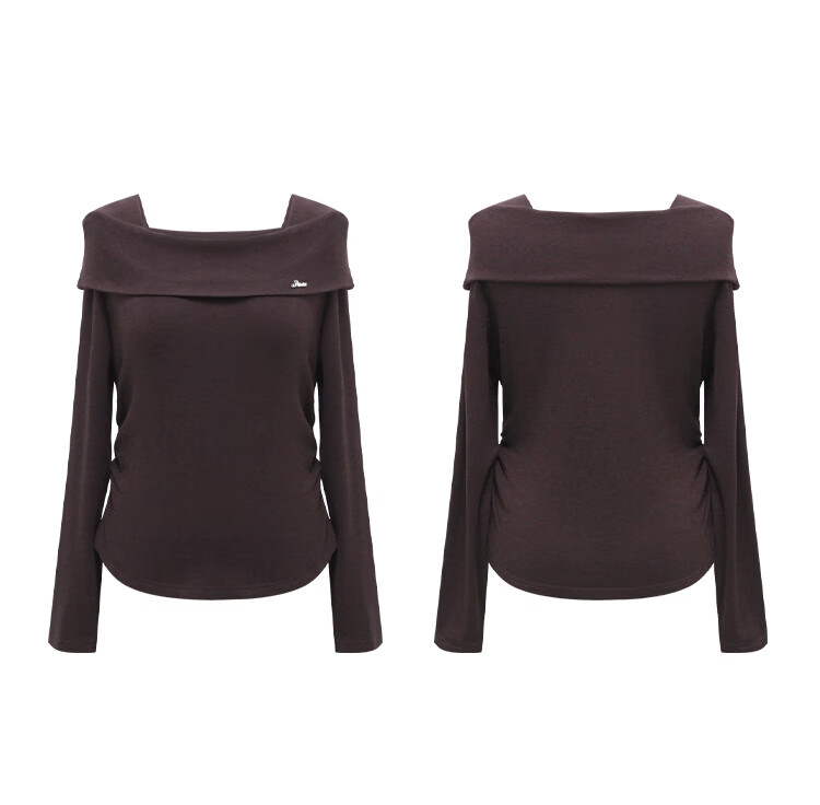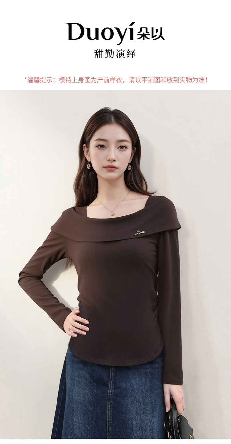 朵以2025冬季新款法式优雅气质抽褶收腰修身一字领针织衫长袖上衣 莫奈紫 L