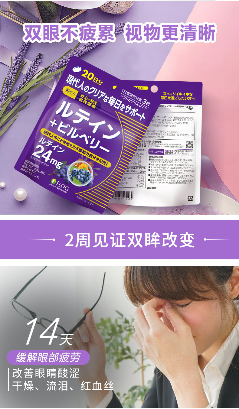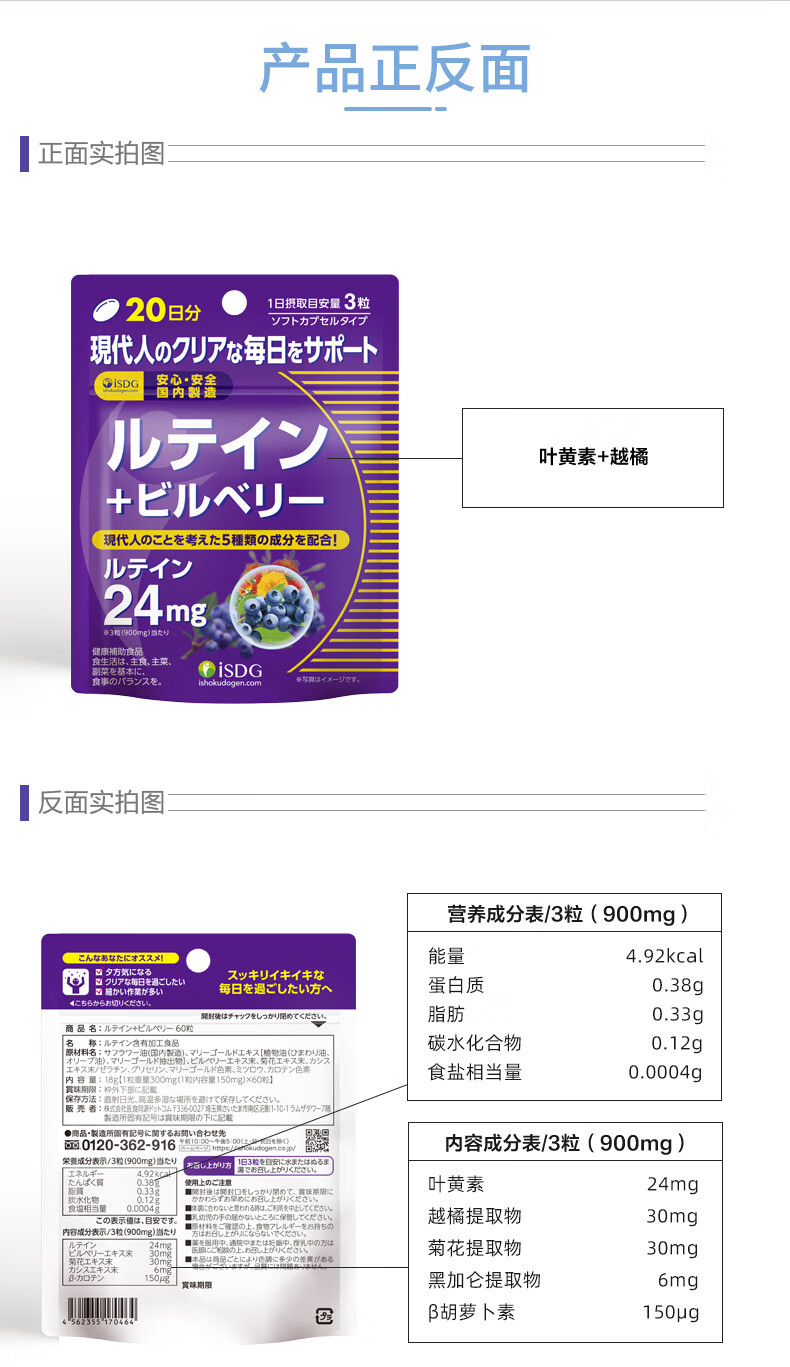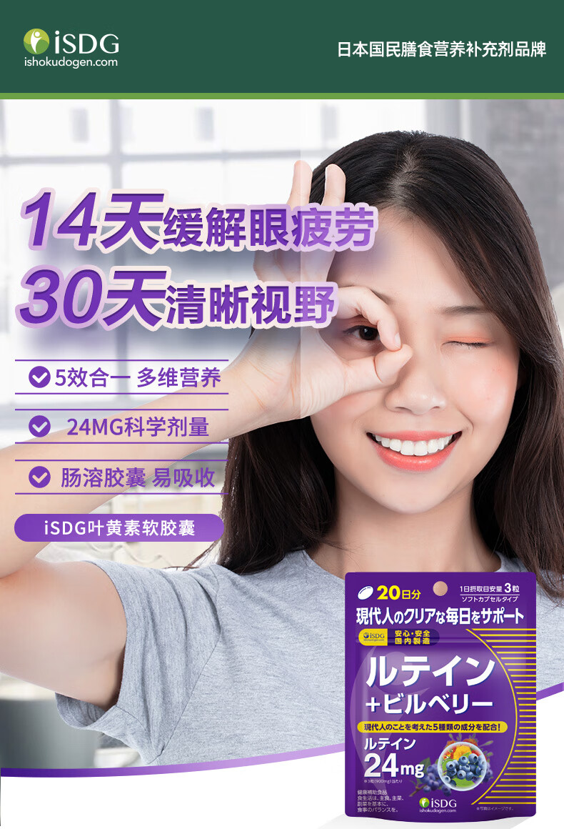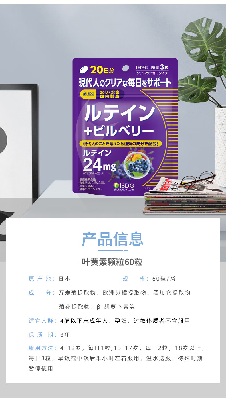 ISDG进口叶黄素蓝莓越橘胶囊60粒/袋4岁以上儿童青少年成人眼睛营养片 【大部分顾客选择】叶黄素60粒*4袋