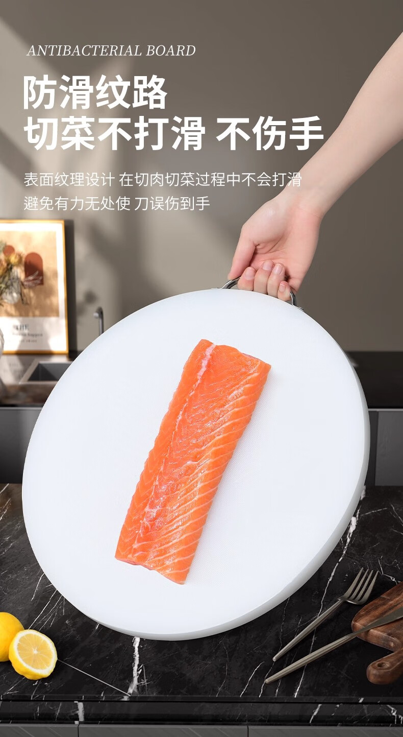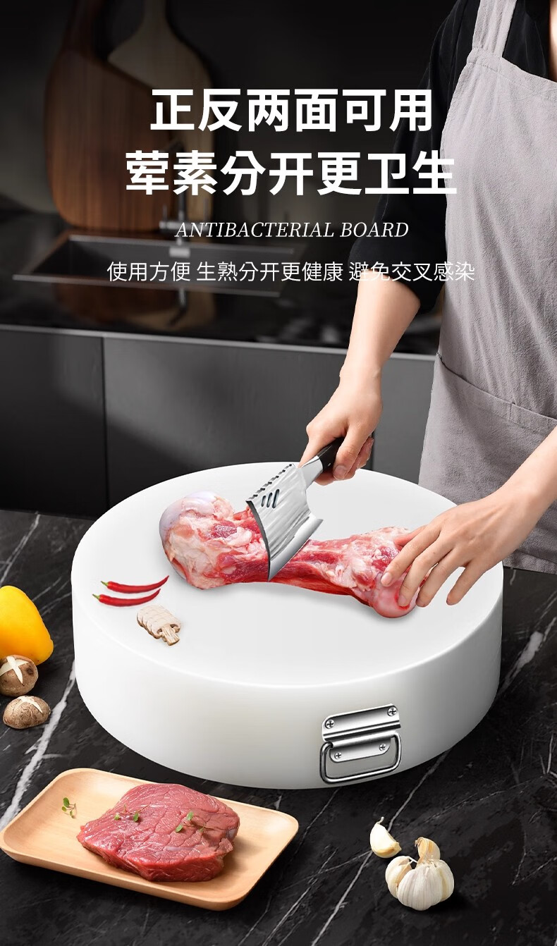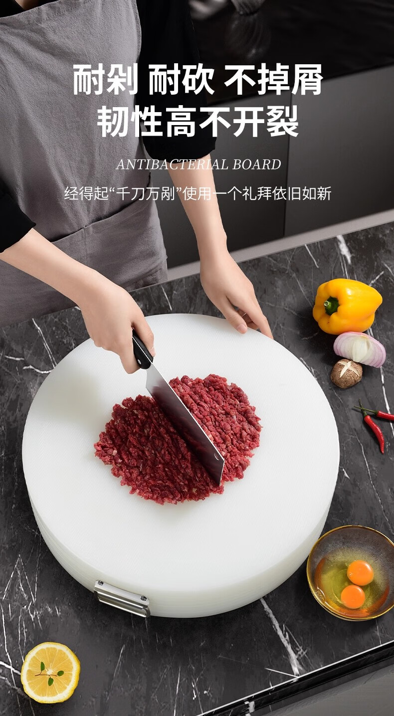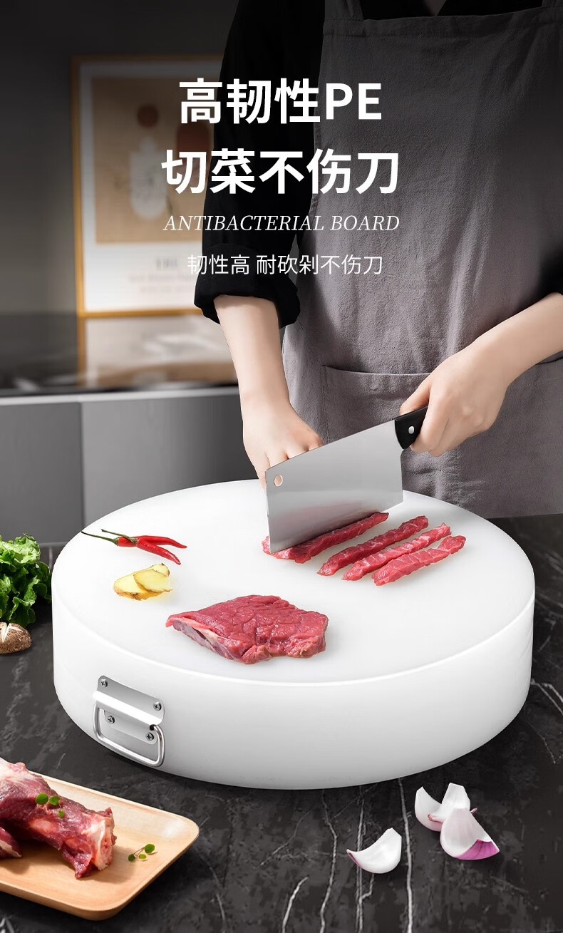 GNNDXX德国厨房厚圆形切菜板抗菌防霉案板商用菜墩剁肉墩家用PE塑料砧板 48*6CM(酒店肉摊专用款)抗菌防霉