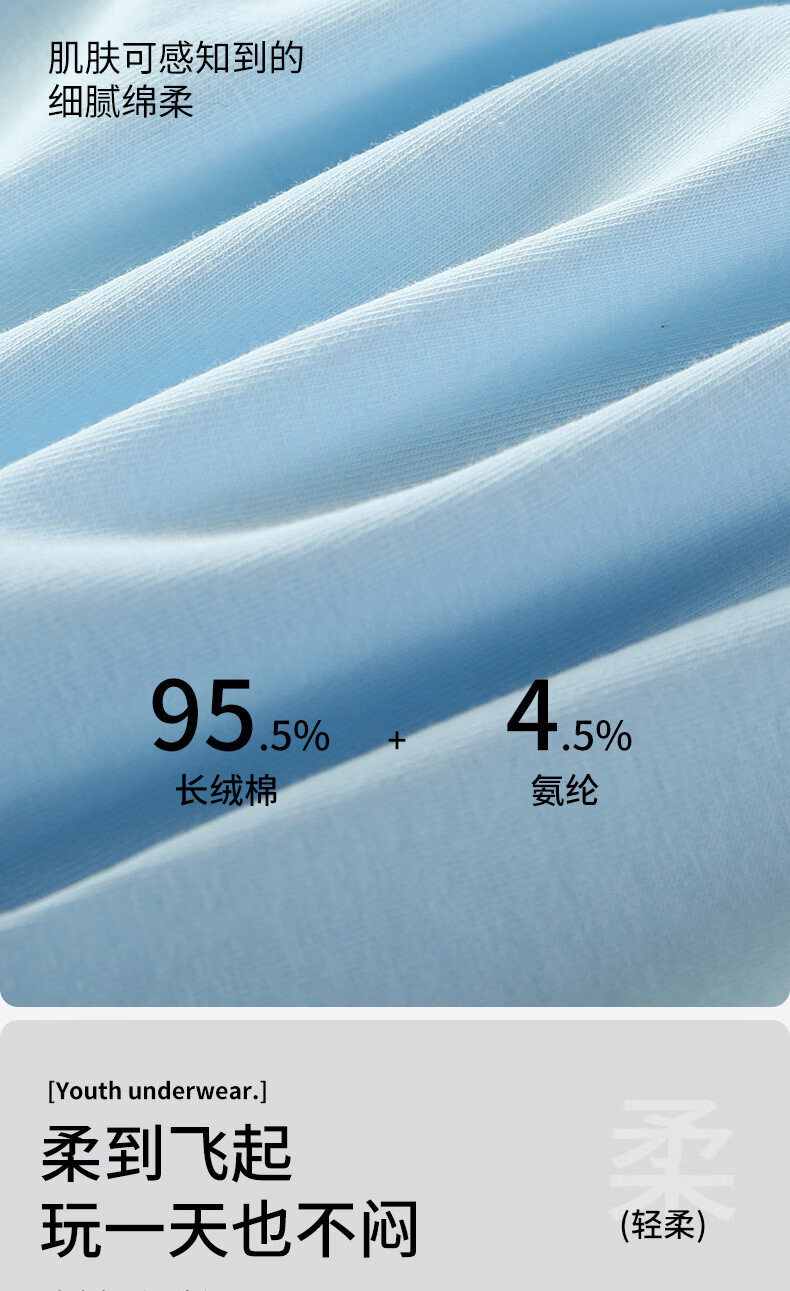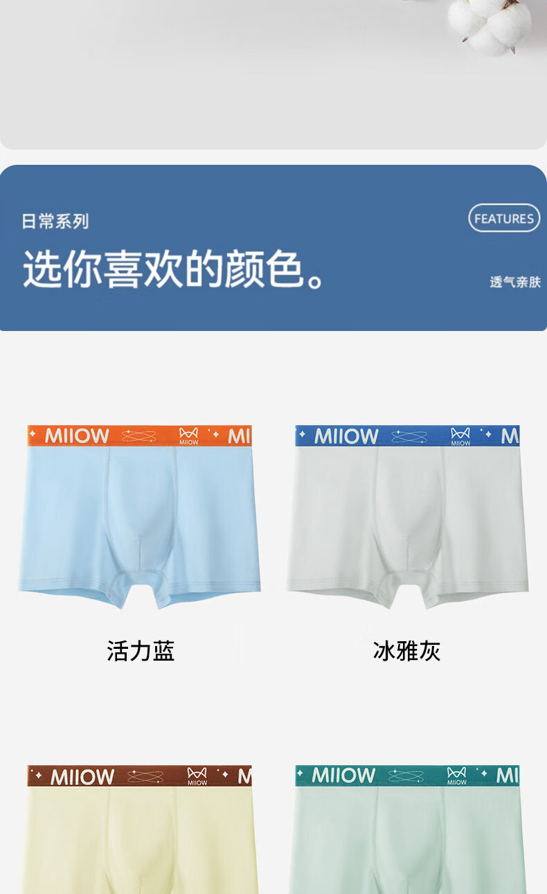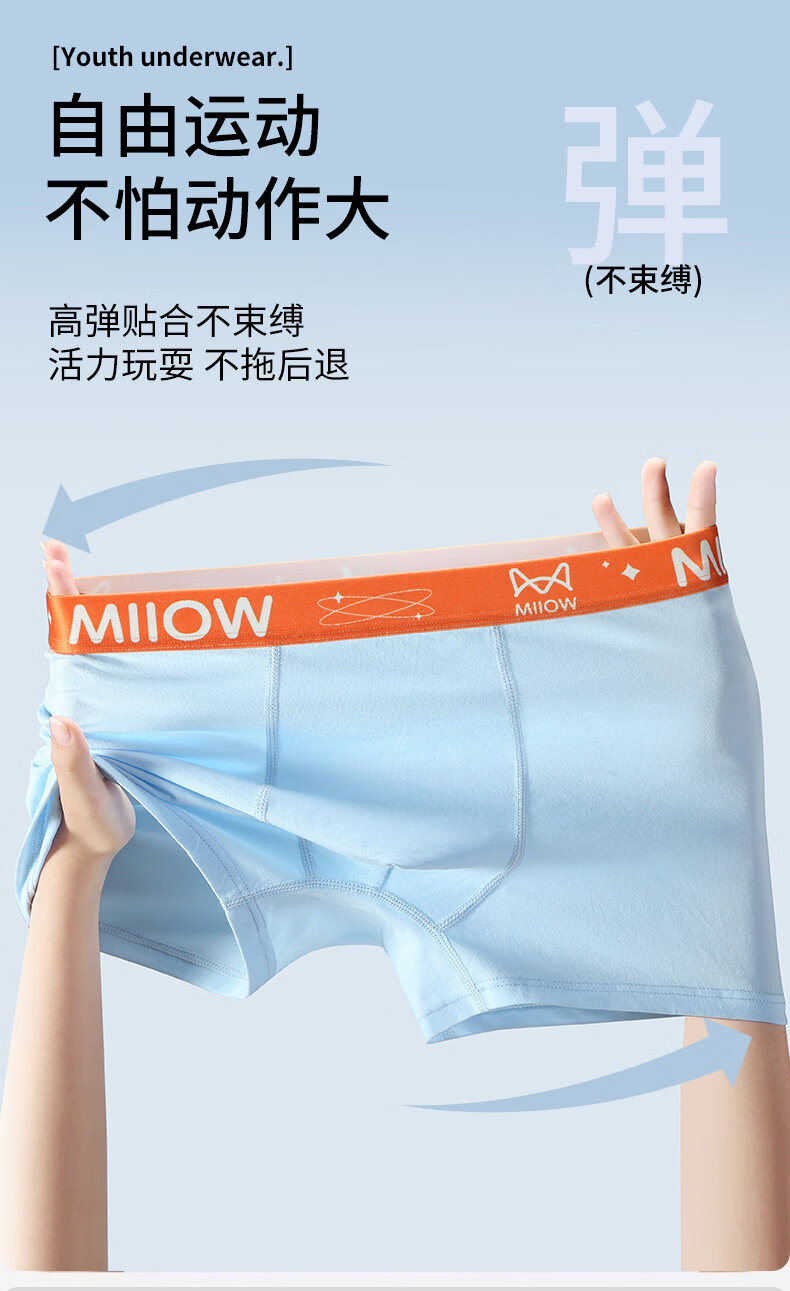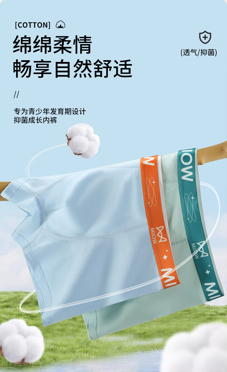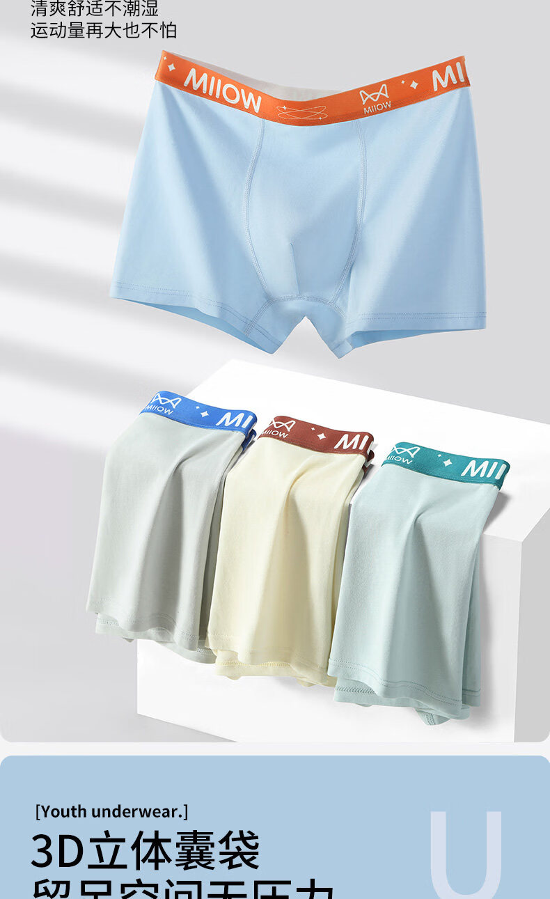 猫人青少年内裤男生纯棉四角裤2026新款发育期初高中生抗菌裆平角裤 【3条装】活力蓝+冰雅灰+暖阳黄 (100A蚕丝抑菌) 160 (S) 建议体重80-100斤
