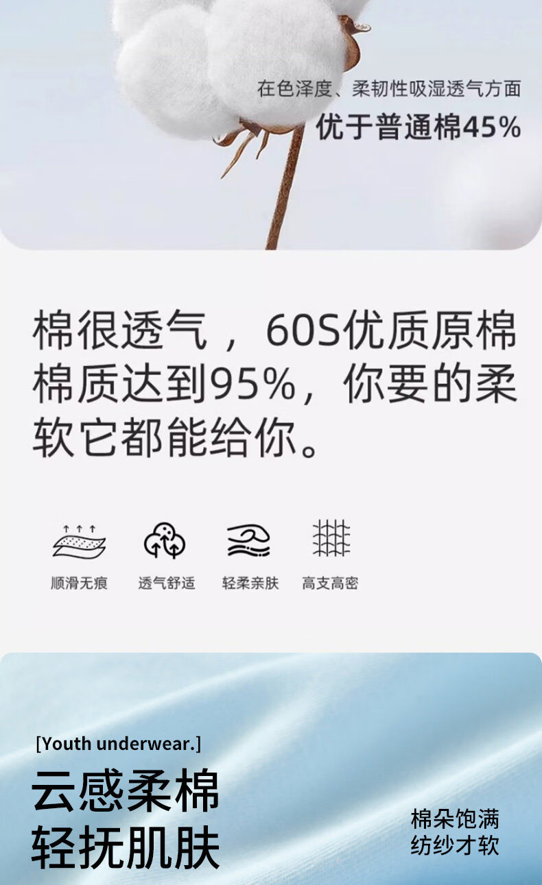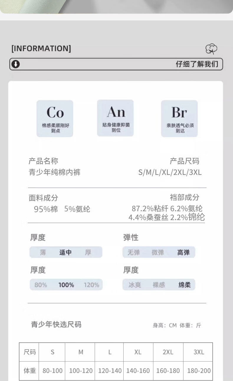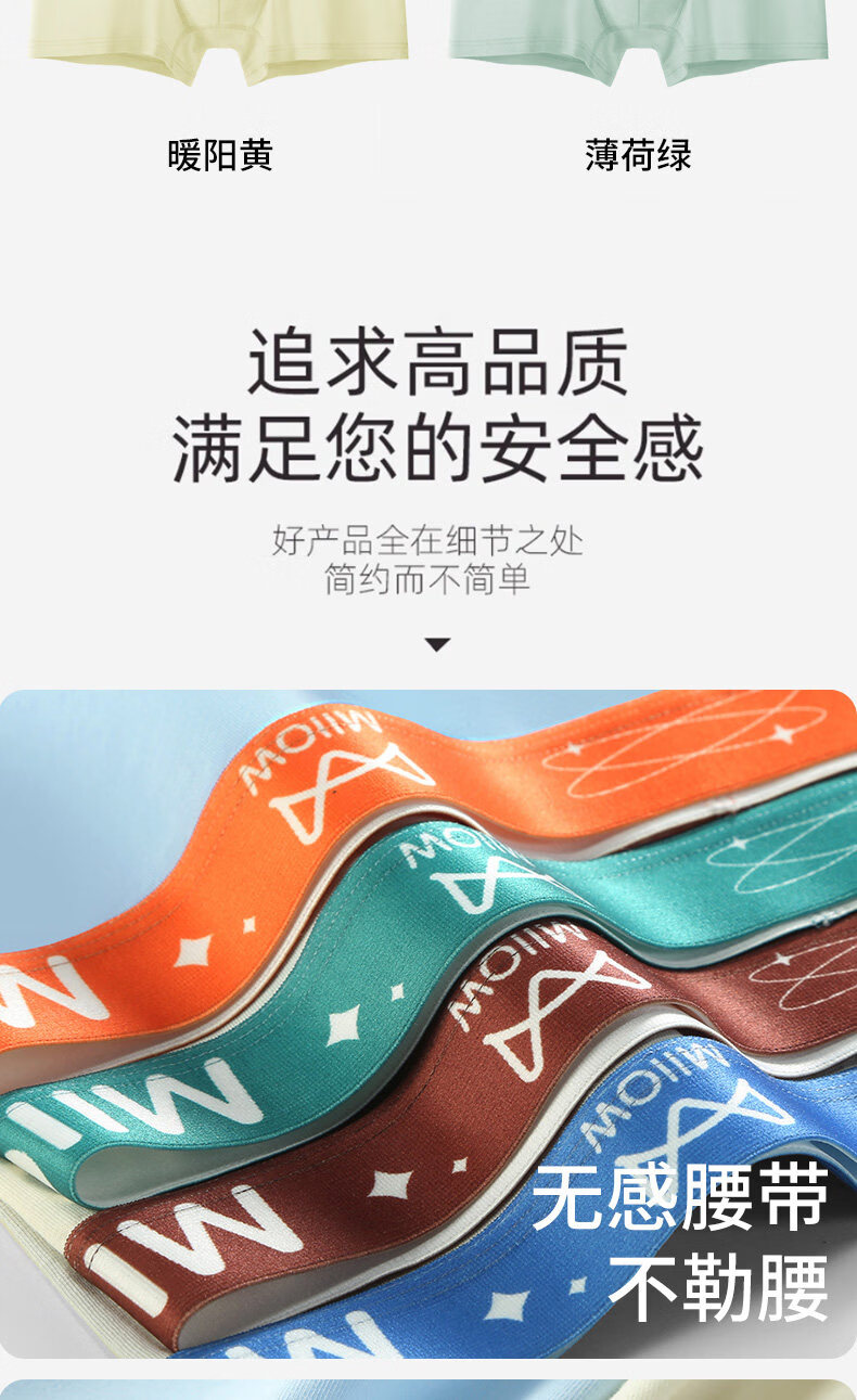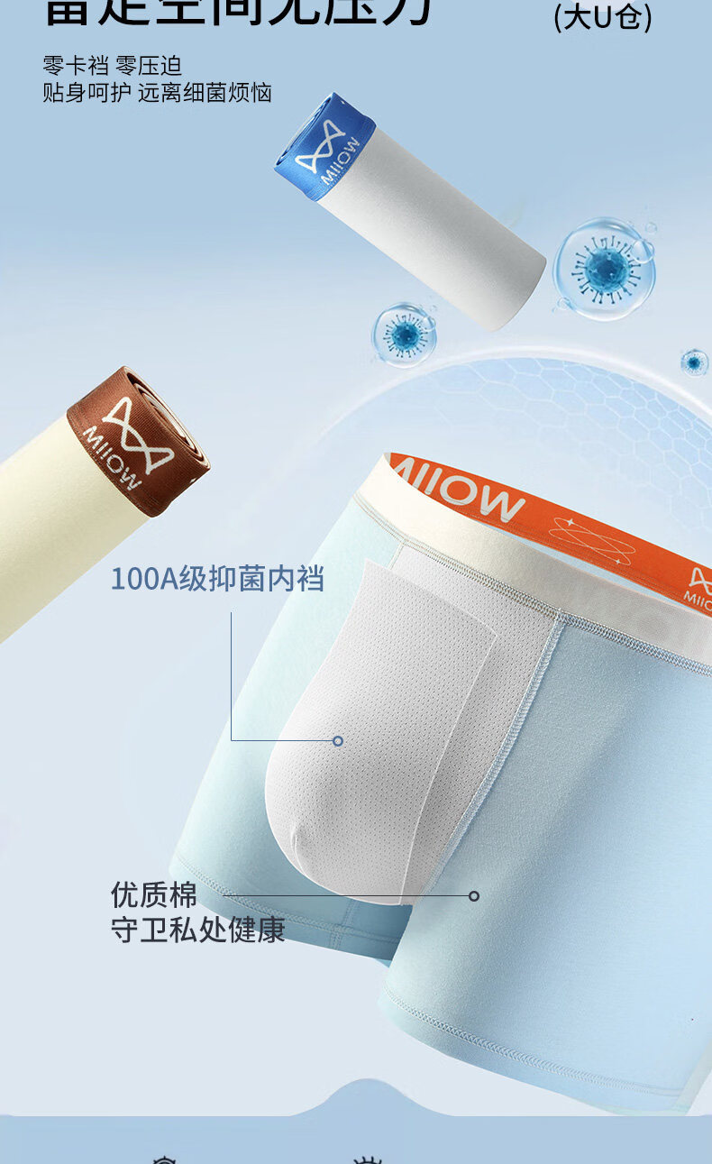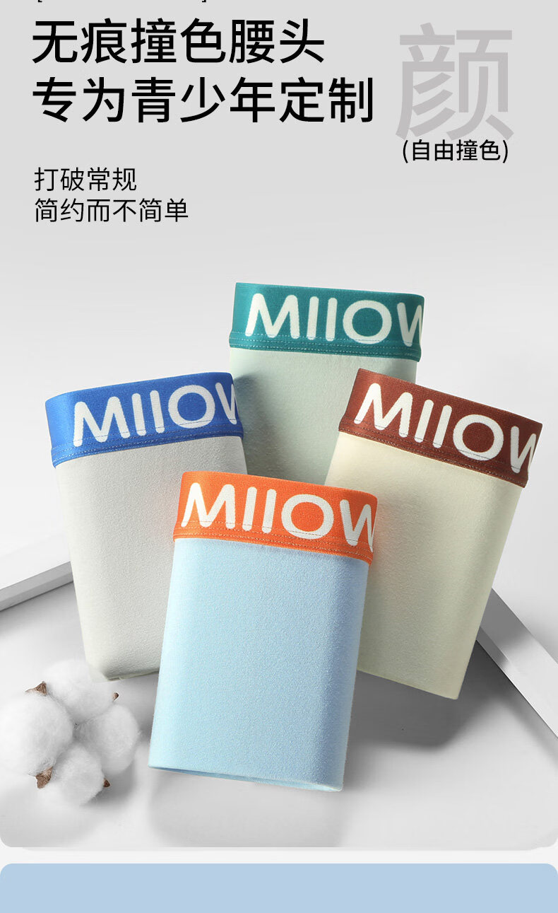 猫人青少年内裤男生纯棉四角裤2026新款发育期初高中生抗菌裆平角裤 【3条装】活力蓝+冰雅灰+暖阳黄 (100A蚕丝抑菌) 160 (S) 建议体重80-100斤
