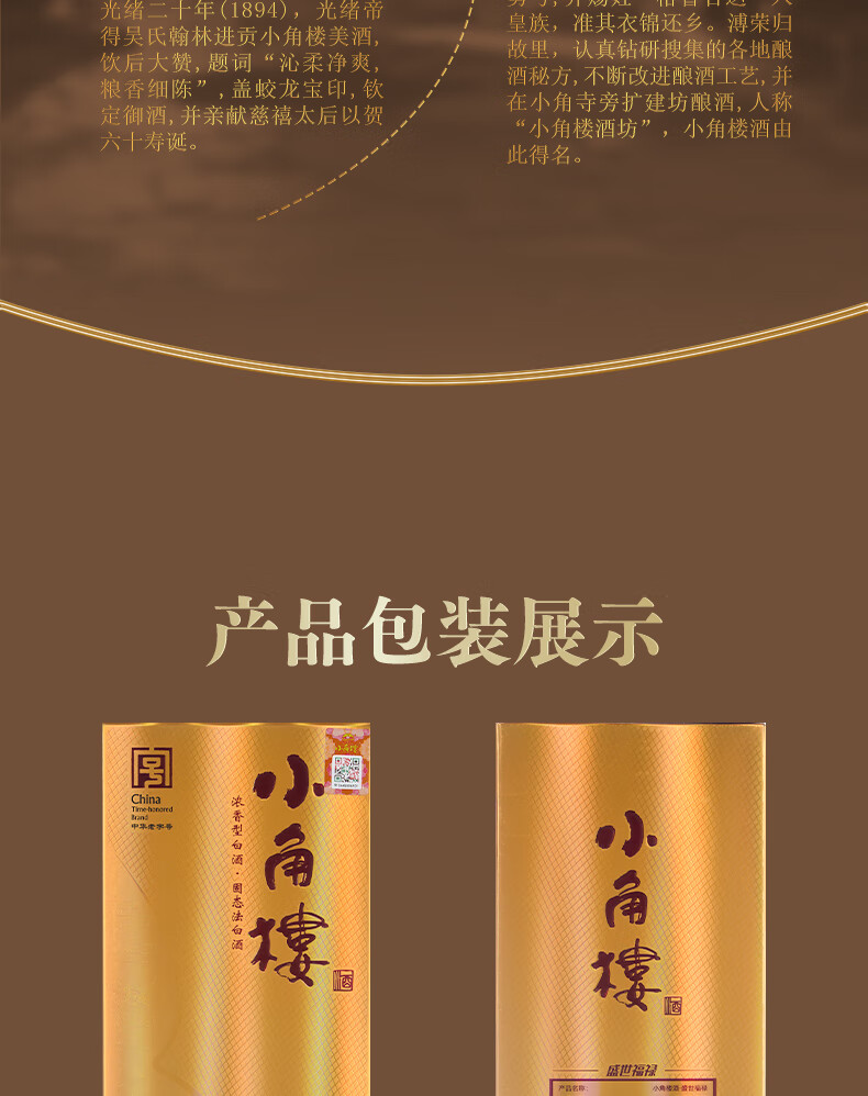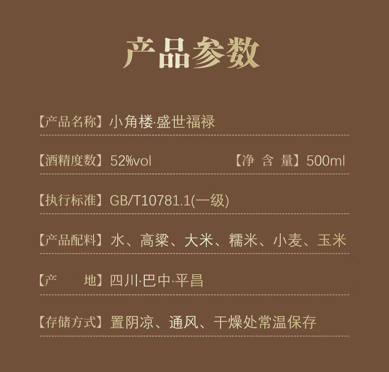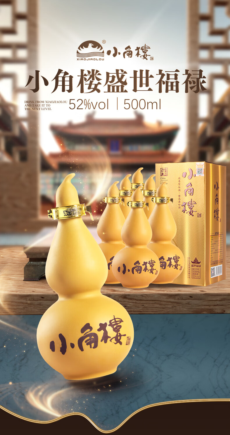 小角楼盛世福禄 四川浓香型白酒固态纯粮食酒500ml*6口粮粮食酒 52%vol 500mL 6瓶 有礼袋
