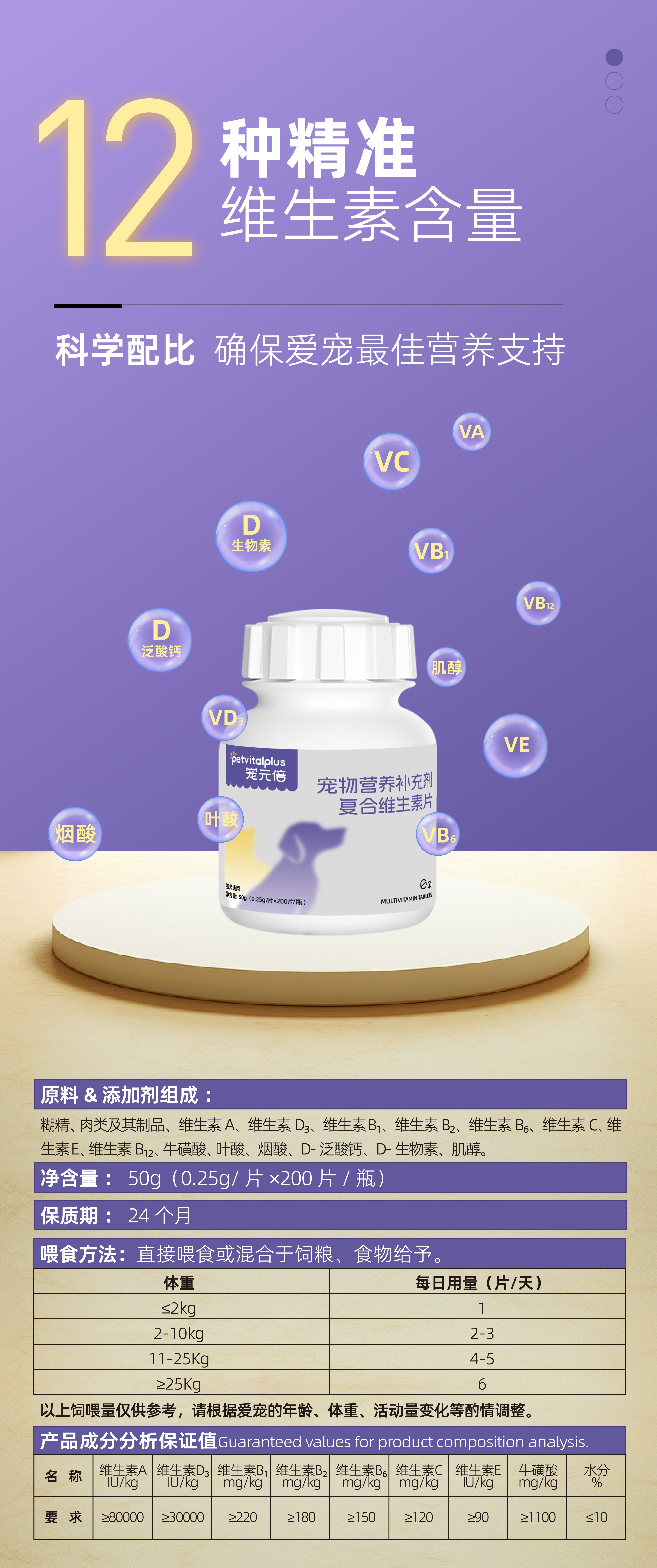 宠元倍专研猫咪复合维生素片微量元素防啃咬狗狗营养补充犬猫通用 维生素试吃1包(20片)