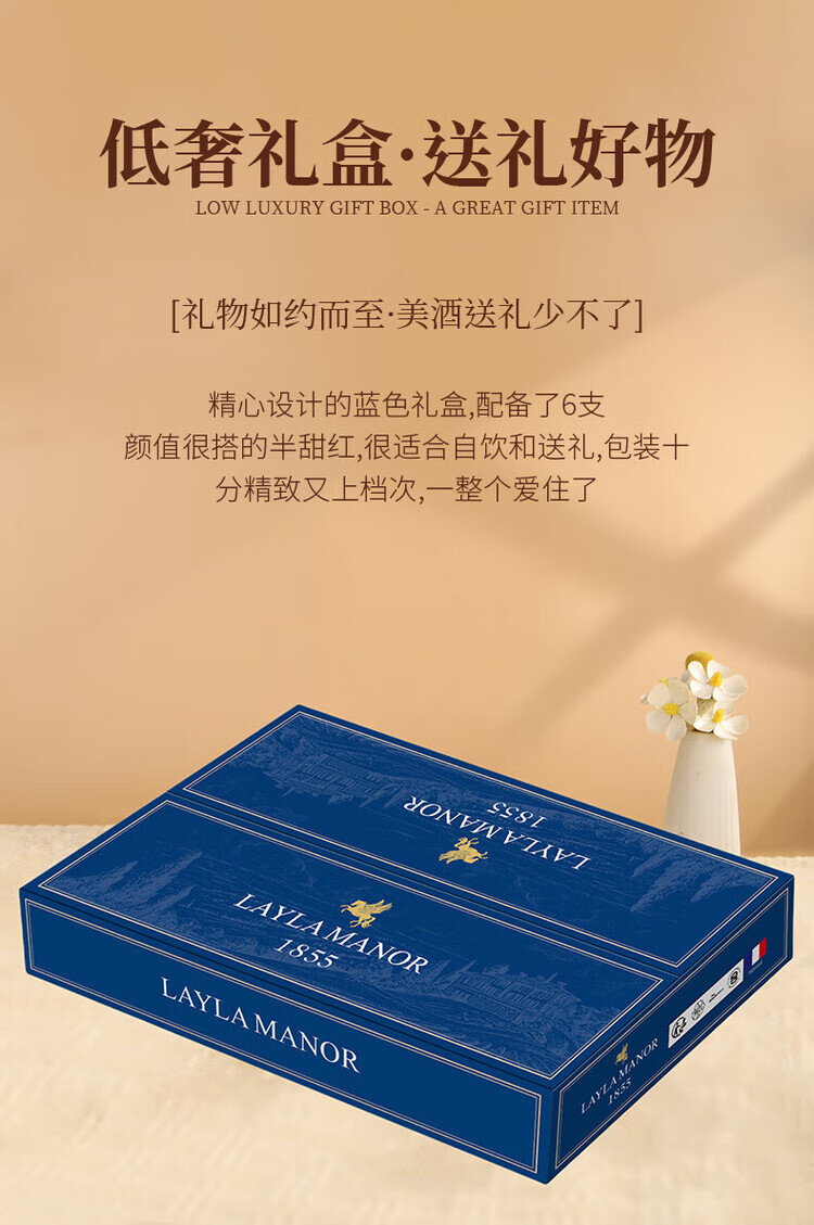 LAYLA【法国蕾拉】原瓶进口14度红酒 半甜红葡萄酒 750mlX6支礼盒装