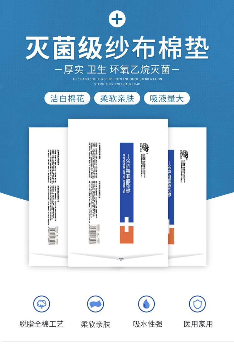 一次性棉纱垫 医用纱布夹棉块加厚纱布棉垫无菌大尺寸伤口包扎 15*20cm(2片/袋*5袋)