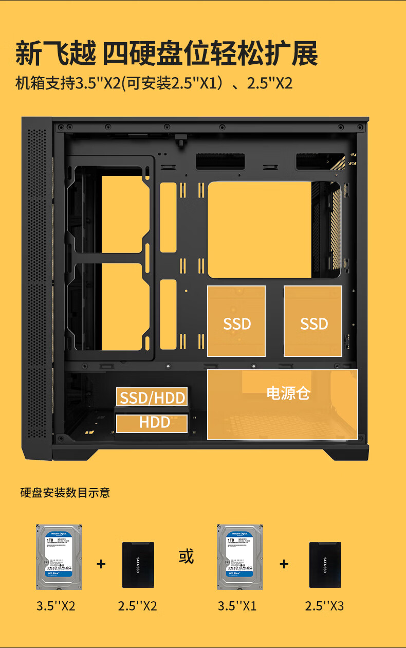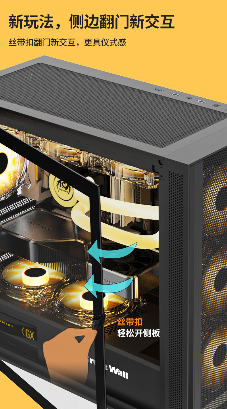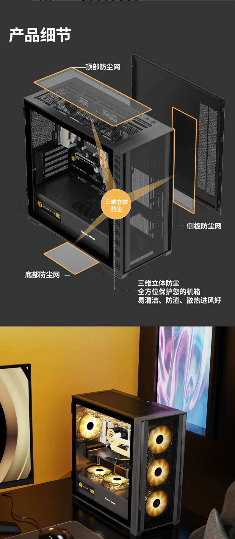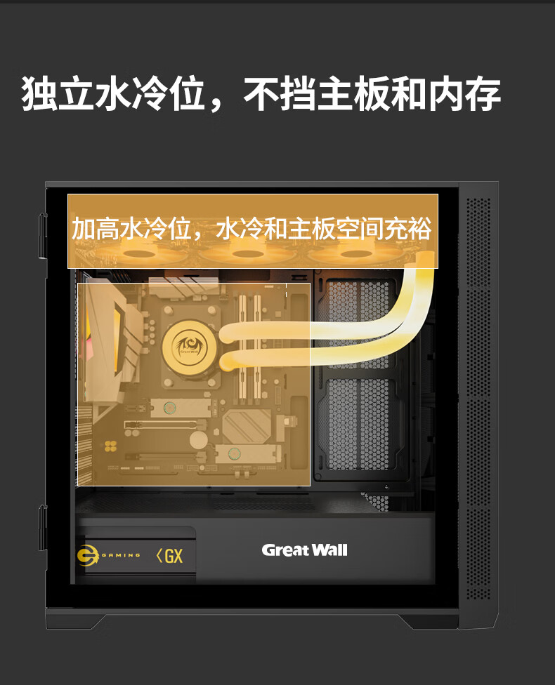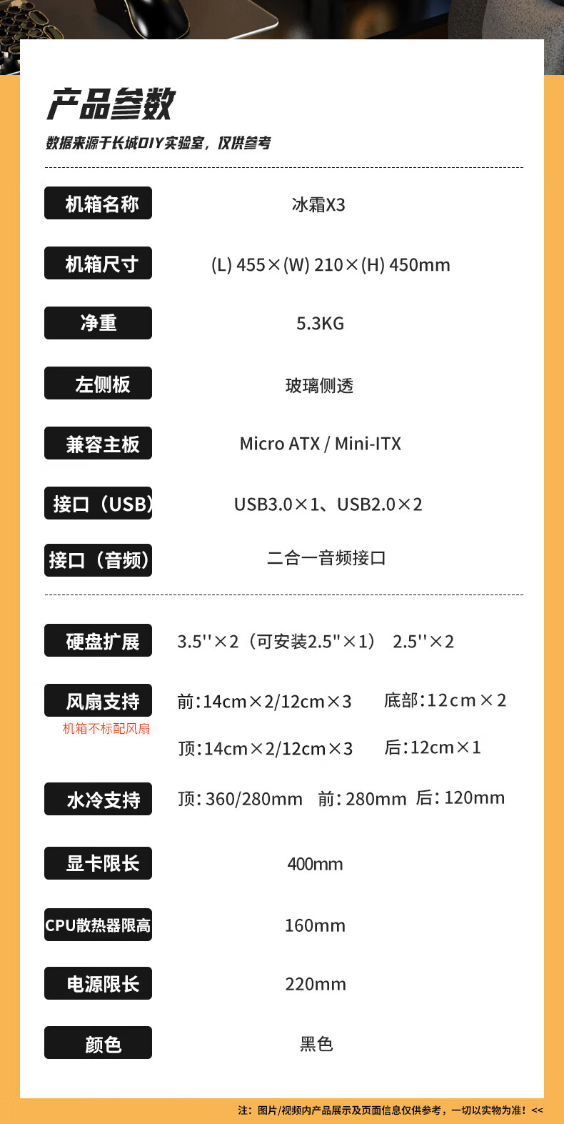 长城(Great Wall)冰霜X3黑色电脑机箱(MATX/360水冷位/磁吸翻门/细网孔金属面板/U3/9风扇位/五槽PCI/兼容5080)