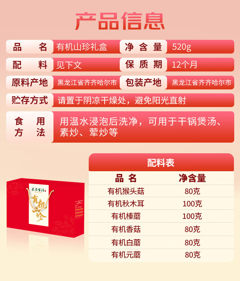 素养生活有机山珍礼盒520g 礼盒 节日礼盒 新年礼盒 春节礼品 年货