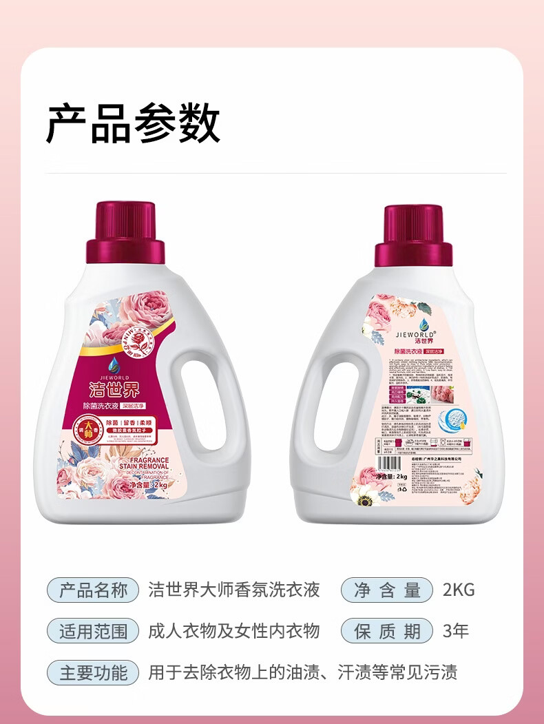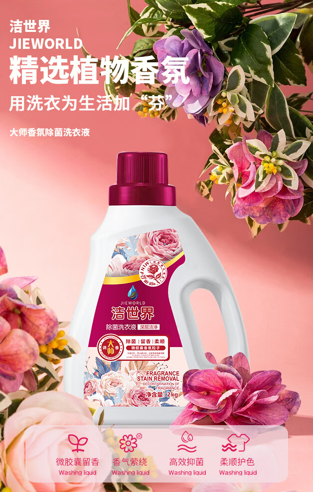 洁世界大师调香香氛洗衣液去污柔顺去污套装2kg瓶留香洗衣液 花香型 抑菌大师调香洗衣液套装2kg*10瓶