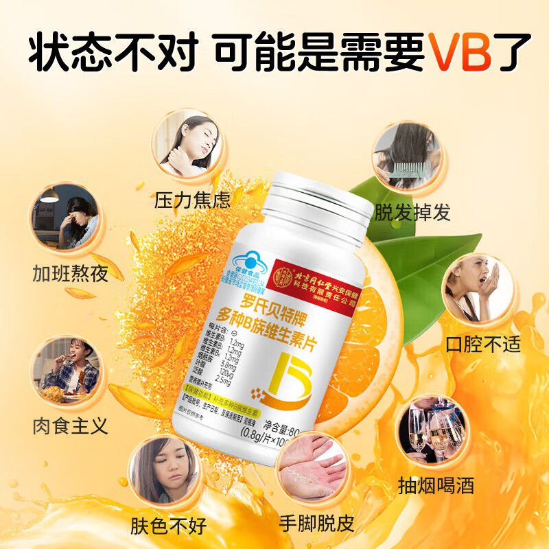 宝芝乐铺北同B族维生素片 补充B族维生素复合维生素b1b2b6叶酸烟酰胺泛酸 3瓶/300粒【周期装】 100粒*3瓶 蓝帽认证