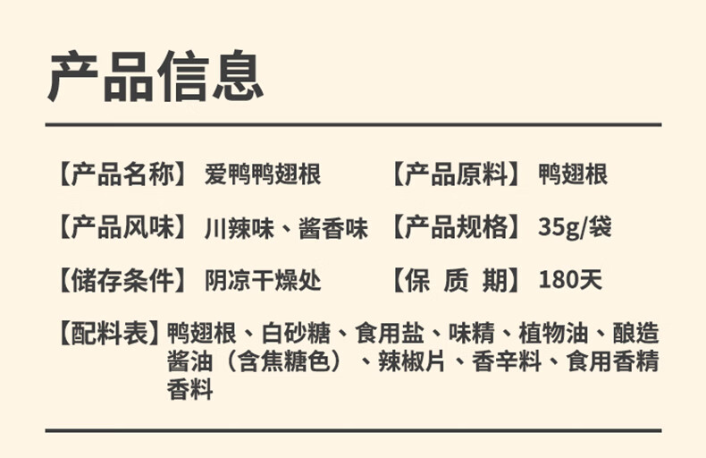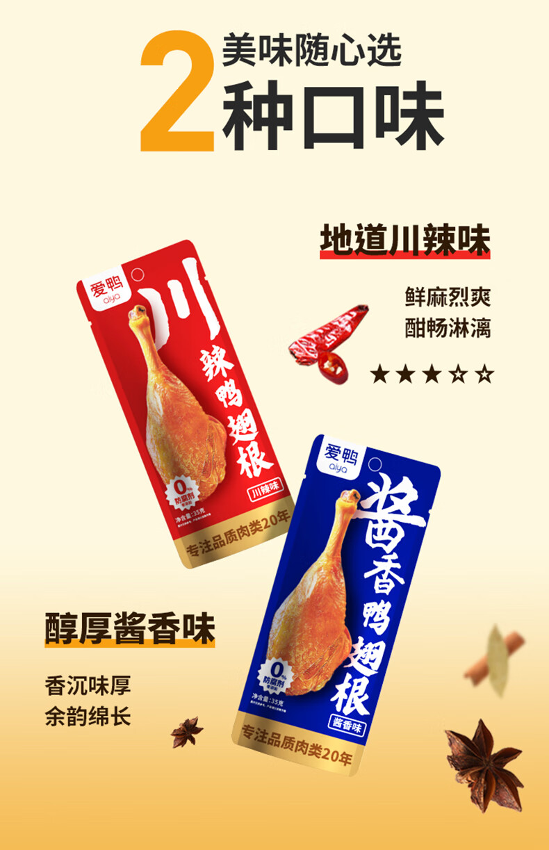 爱鸭鸭翅根卤味鸭货小鸭腿开袋即食非鸡腿熟食小吃休闲解馋零食 爱鸭鸭翅尖10g*2袋