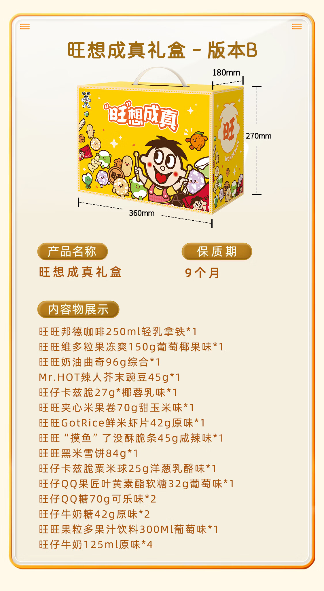 旺旺零食大礼包旺想成真礼盒1.88kg休闲零食团购年节礼品旺旺大礼包 旺想成真礼盒1.88kg