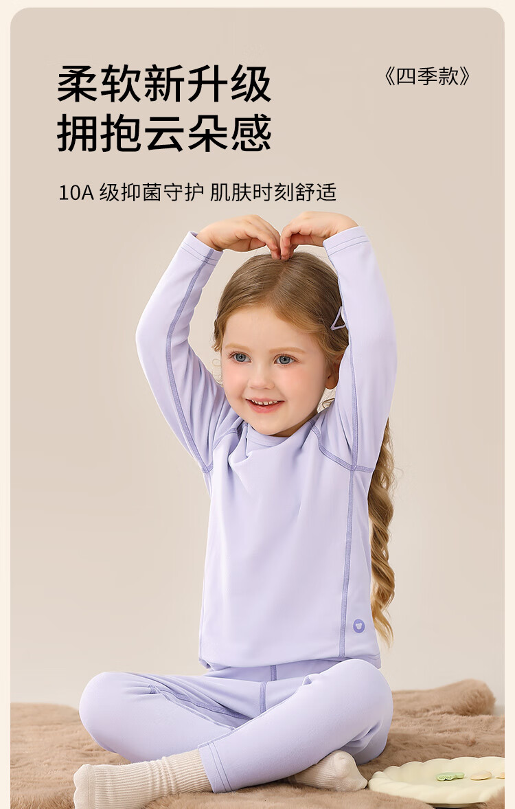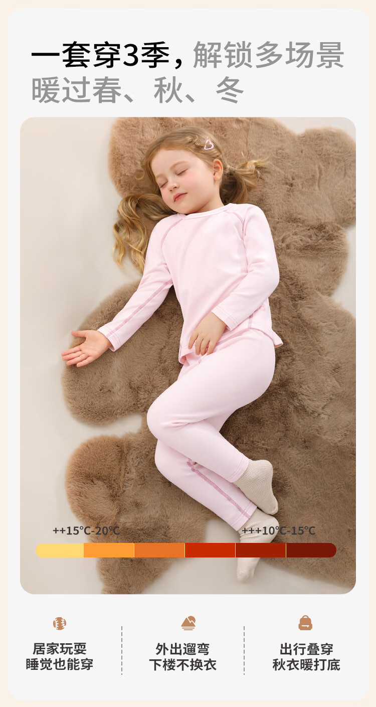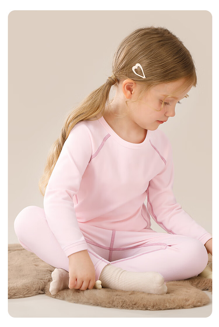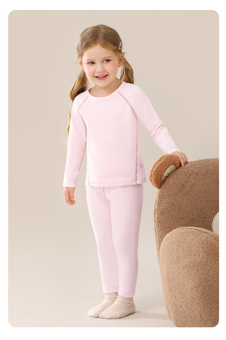 Classic Teddy儿童保暖内衣春季新款男童长袖春衣春裤女童抑菌套装 浅粉 90