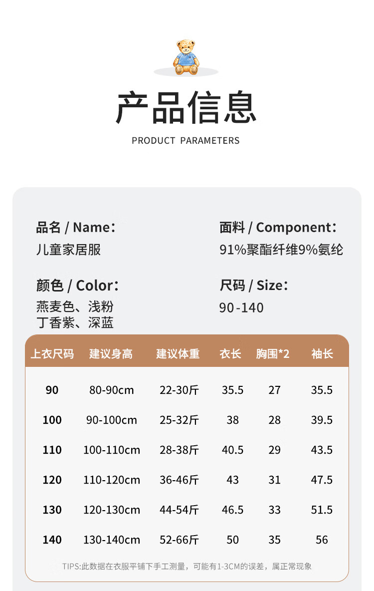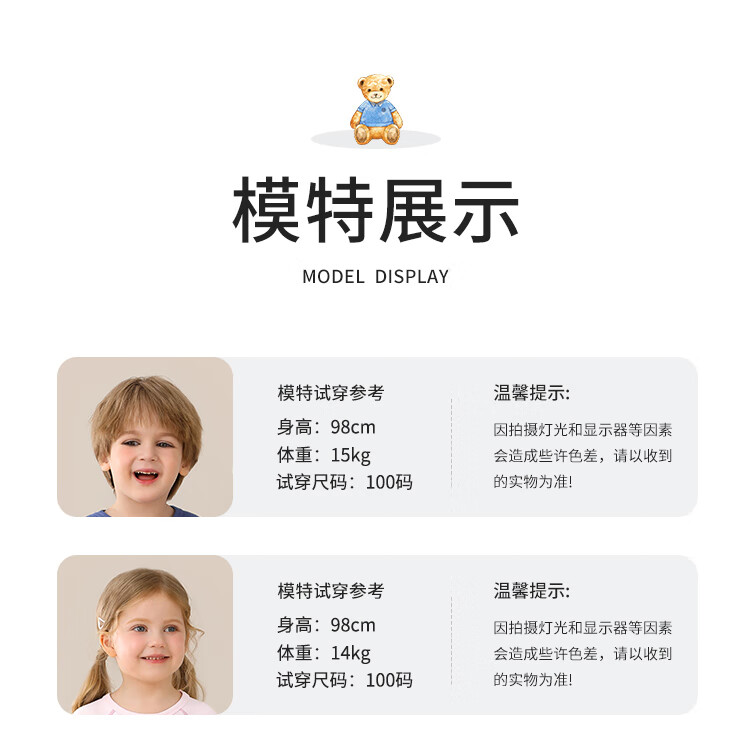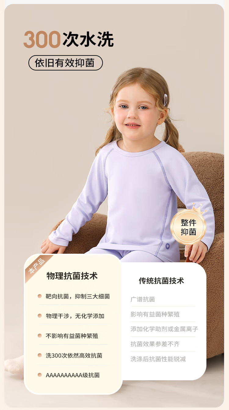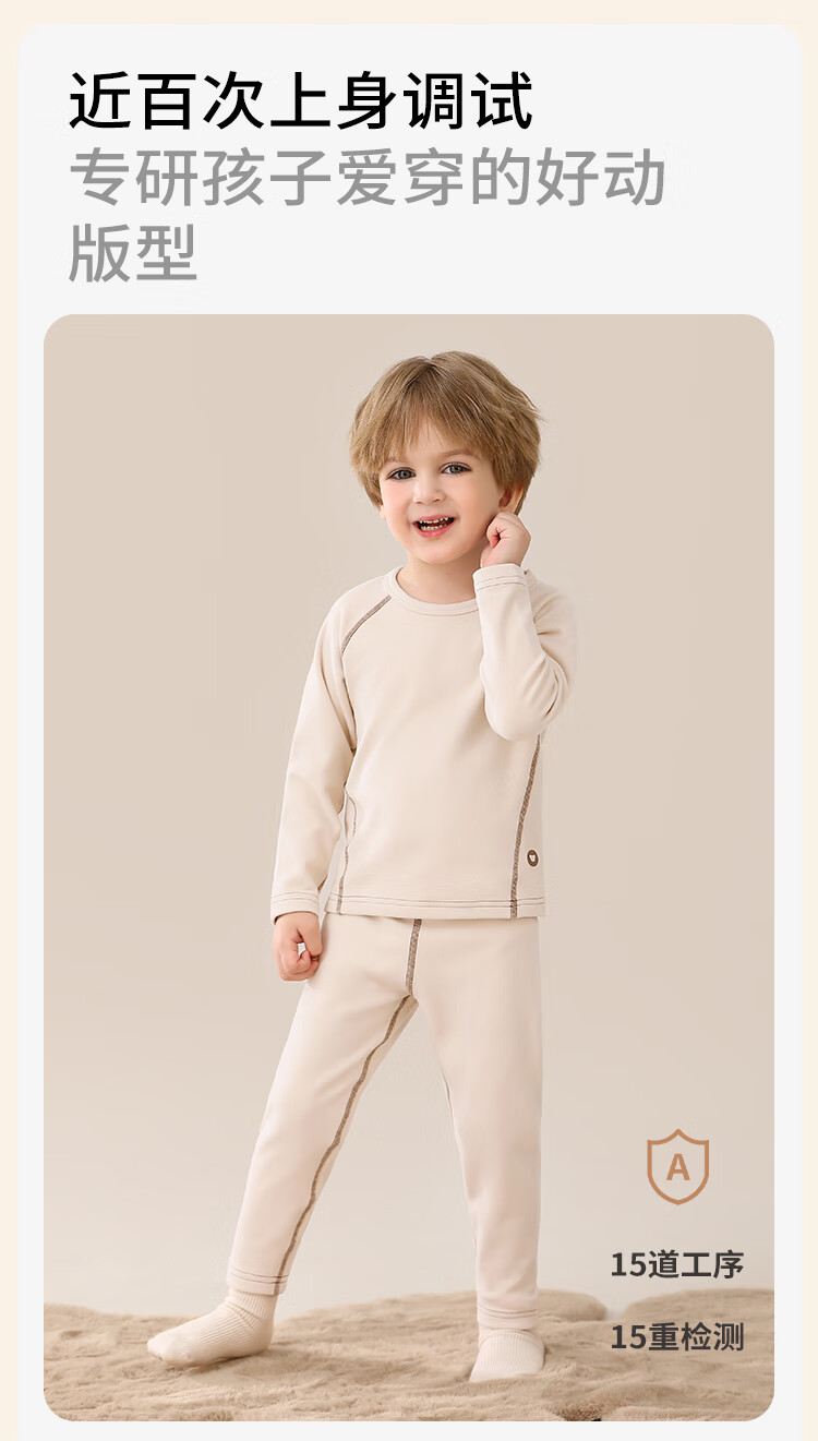 Classic Teddy儿童保暖内衣春季新款男童长袖春衣春裤女童抑菌套装 浅粉 90
