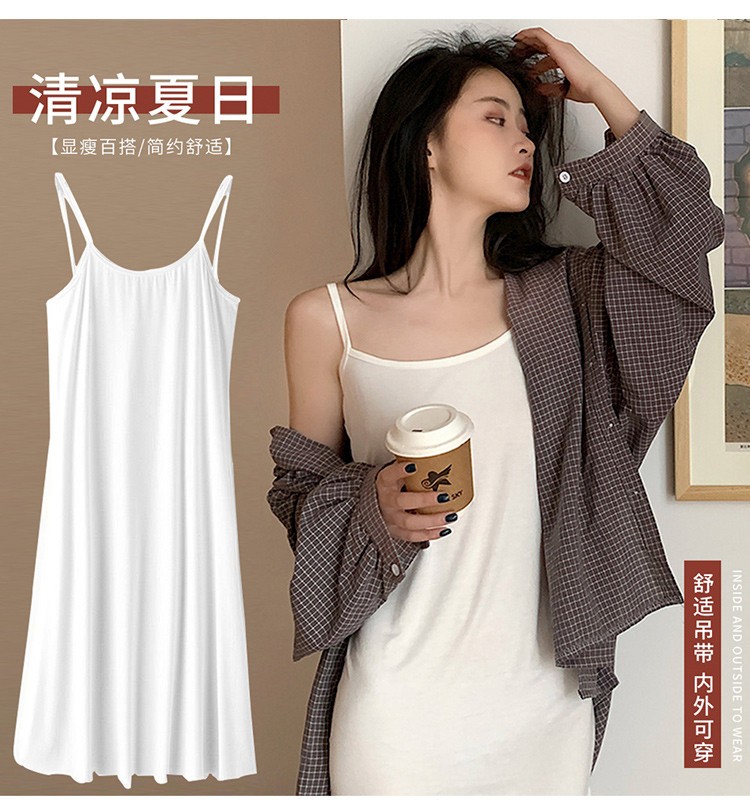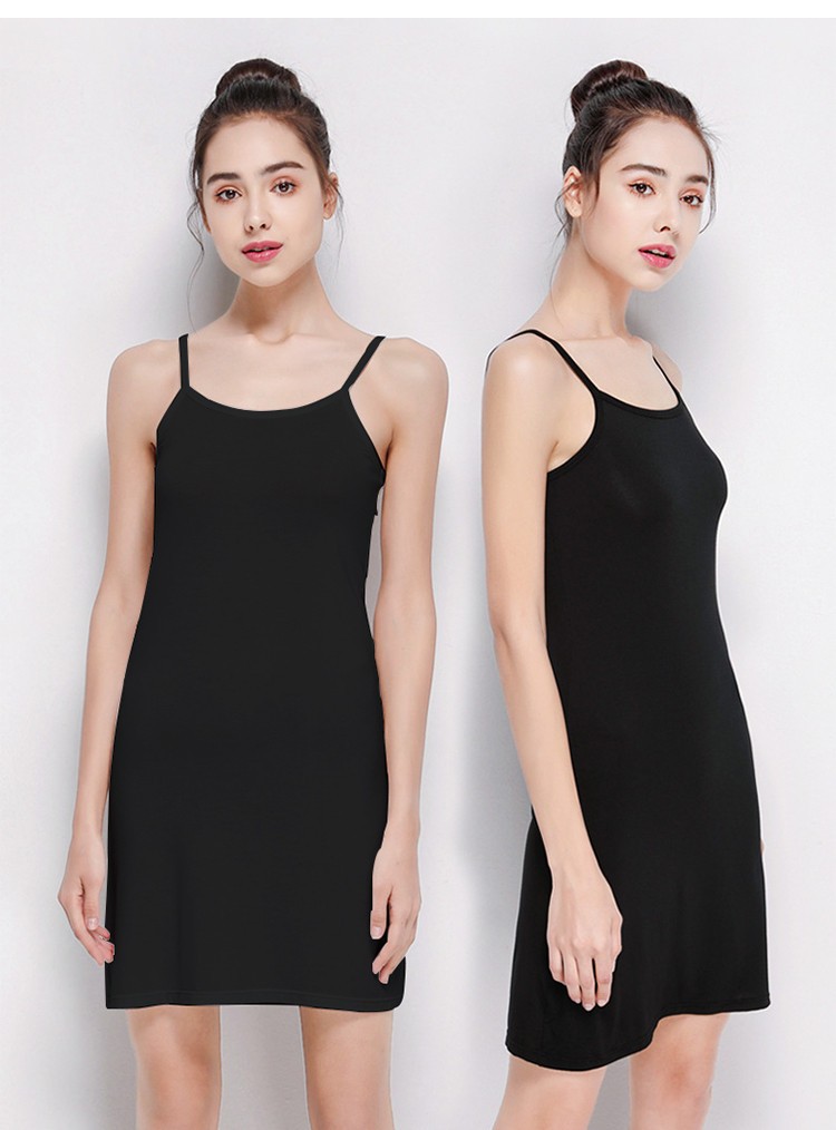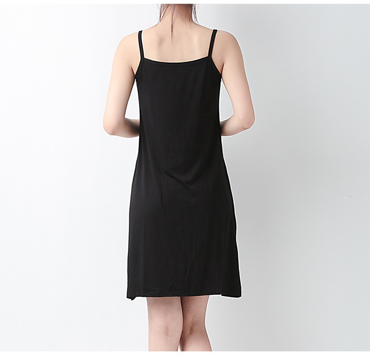 莫代尔睡裙夏季可外穿吊带裙女内搭中长款宽松无袖背心裙 黑色中长款 均码 (80-140斤MM)