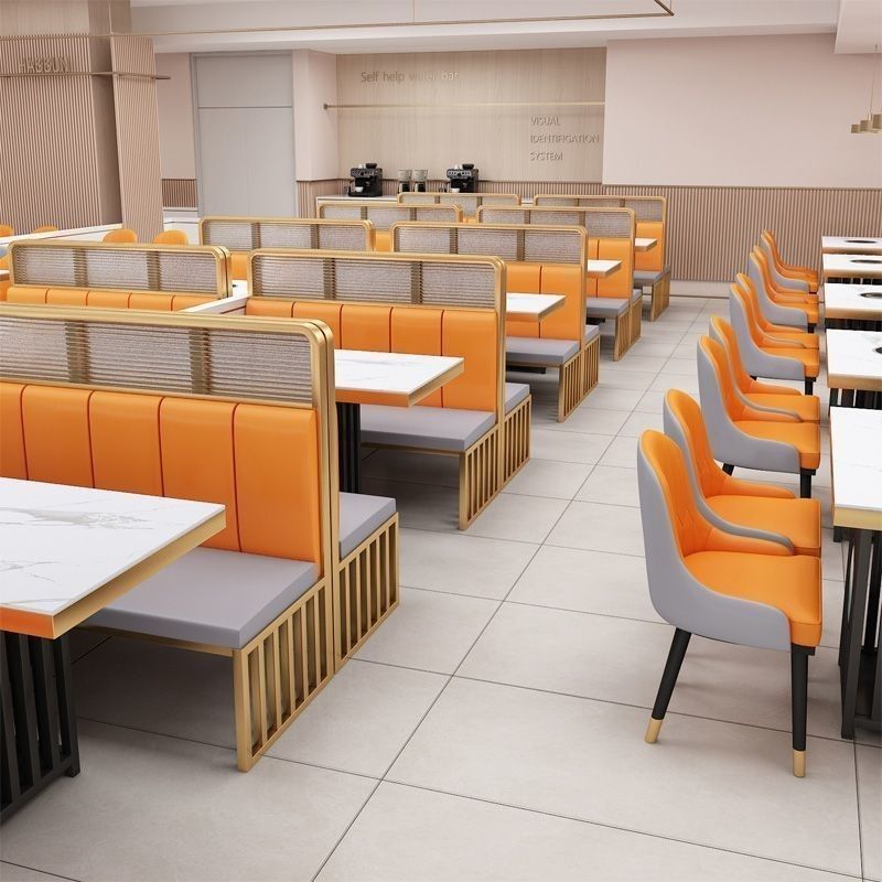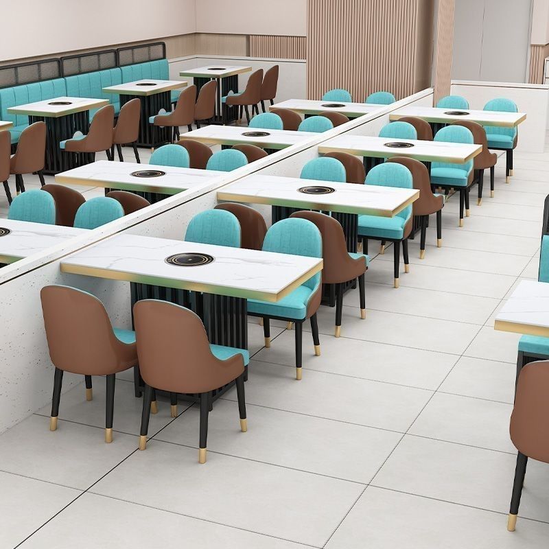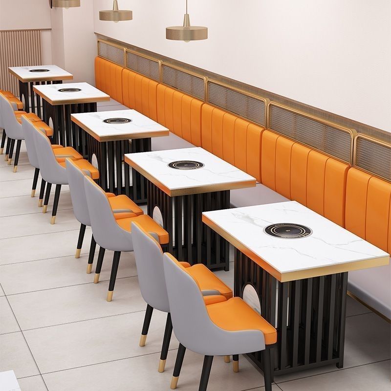火锅桌子电磁炉一体岩板大理石实木商用烤肉无烟沙发桌椅卡座组合