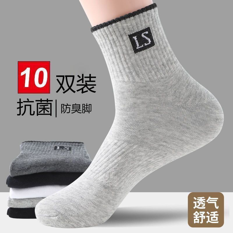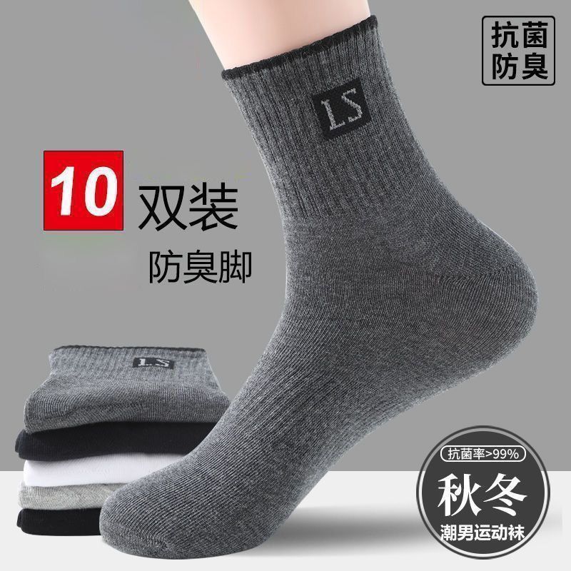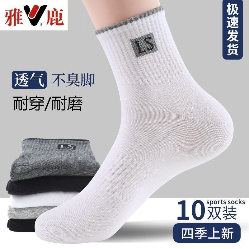 雅鹿新疆棉袜子男士四季款中筒抗菌防臭吸汗透气春秋百搭字母运动