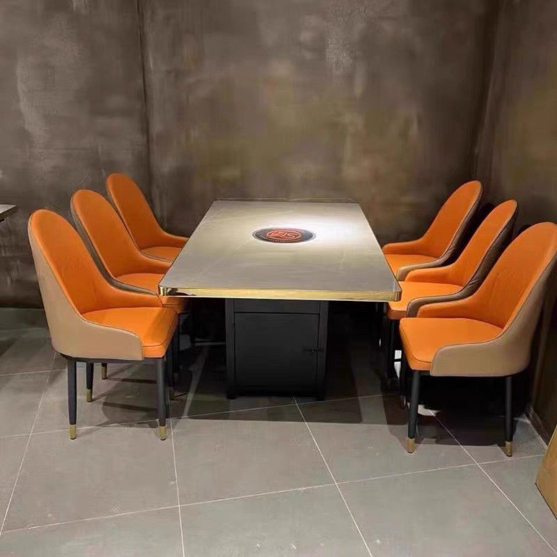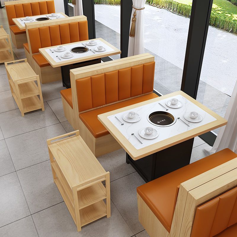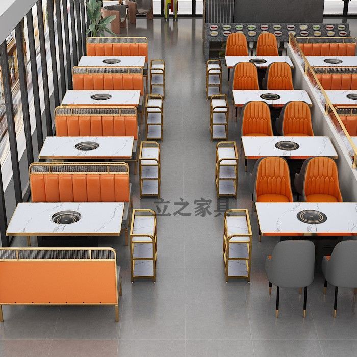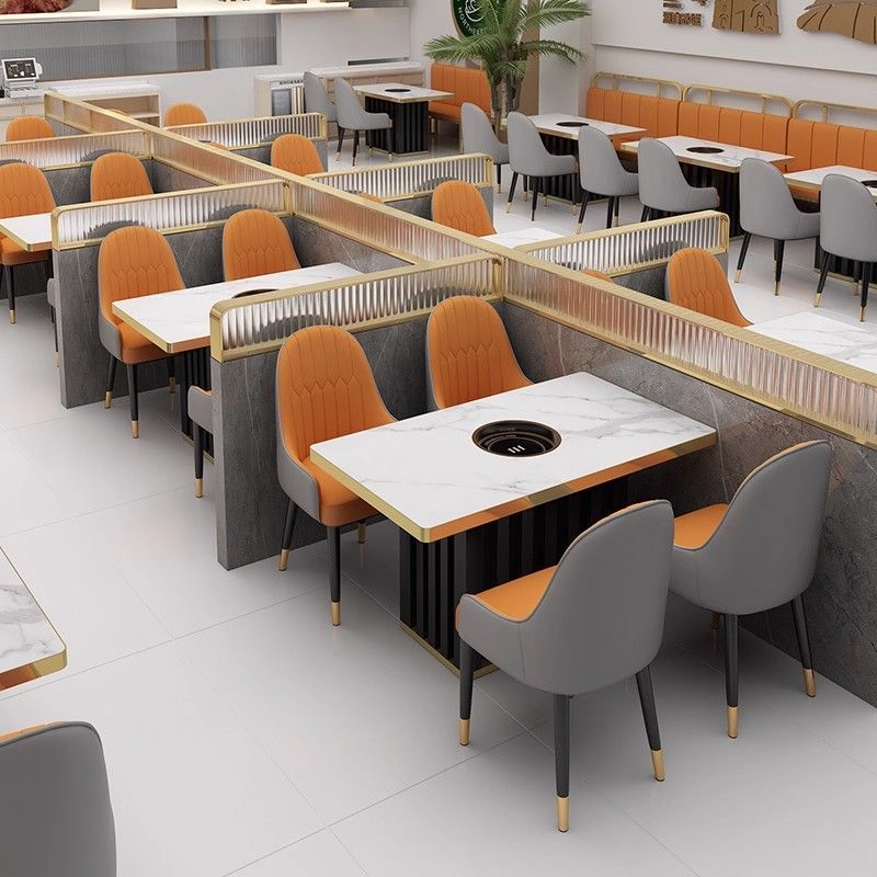 岩板大理石火锅桌子电磁炉商用一体无烟烤肉实木桌椅沙发卡座组合