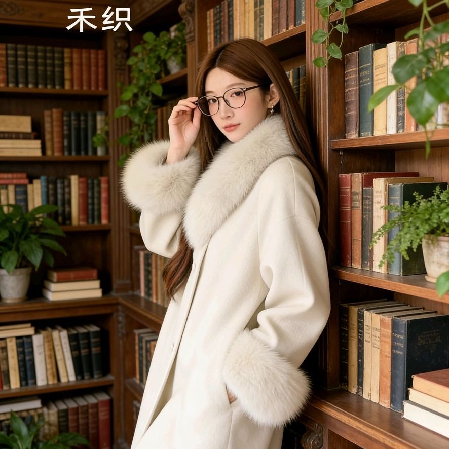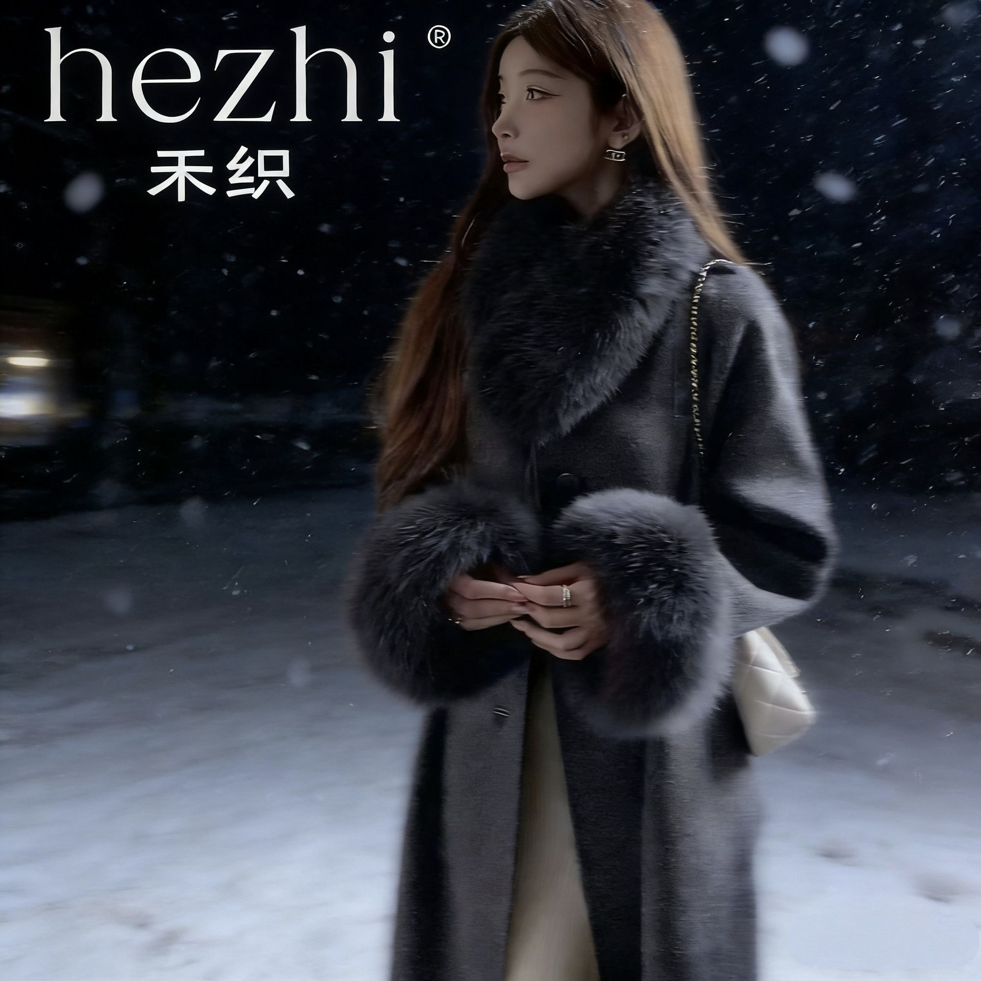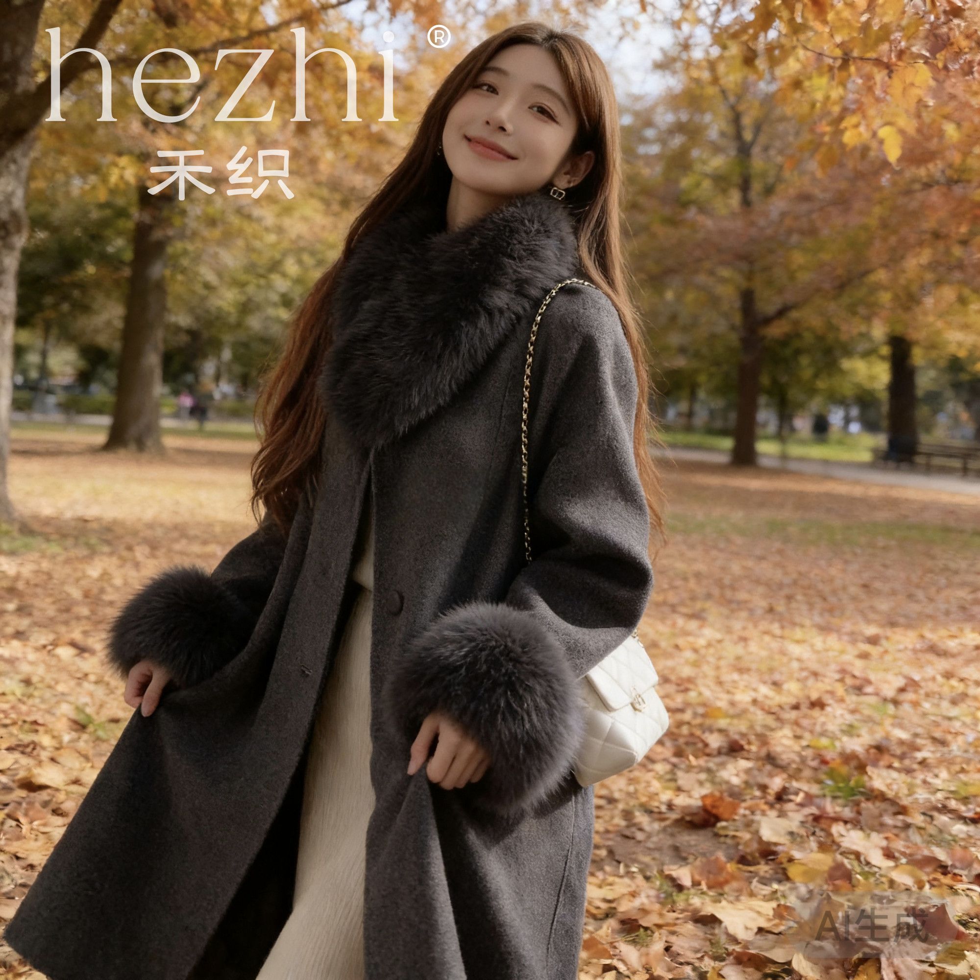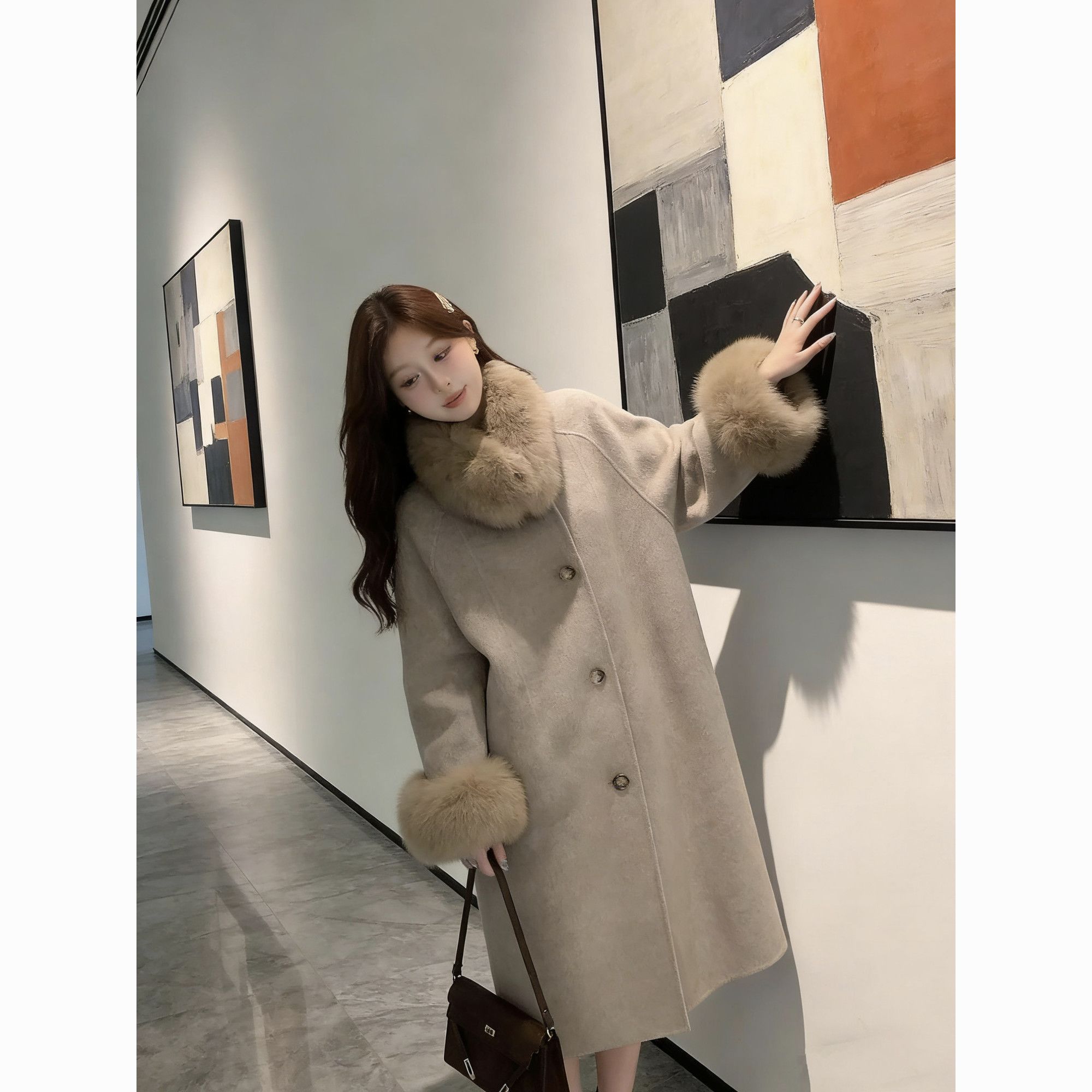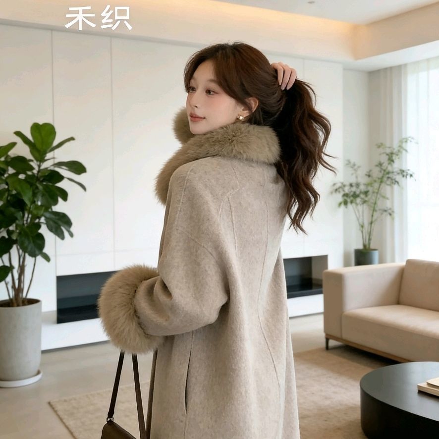 [小个子版]双面新款羊毛狐狸大衣韩版显毛领呢大衣高级长款外套